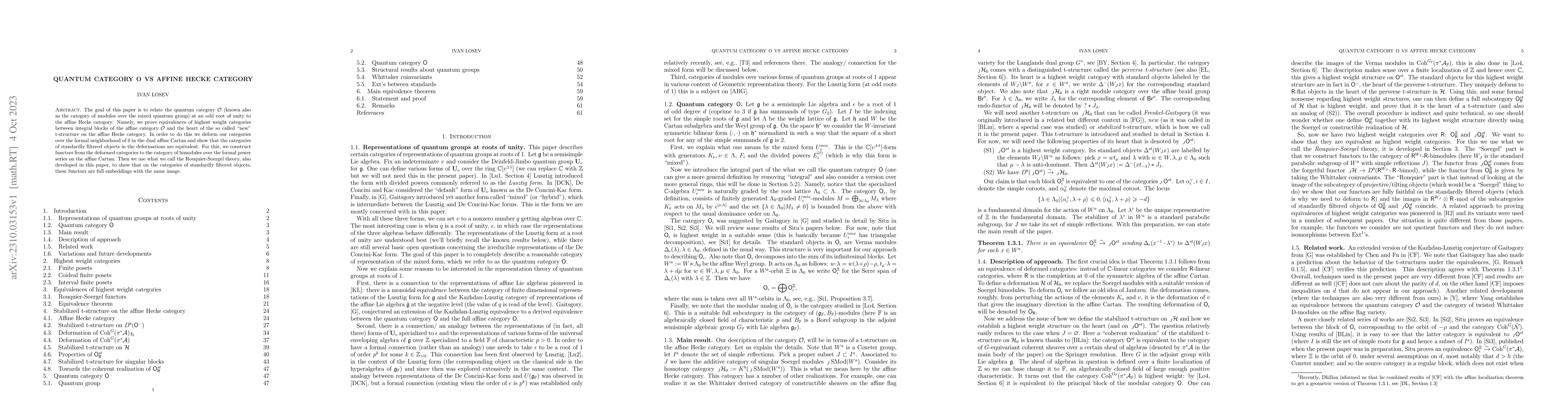 This paper establishes equivalences between integral blocks of the quantum category $\mathcal{O}$ and the heart of the "new" t-structure on the affine Hecke category by deforming these categories over the formal neighborhood of $0$ in the dual affine Cartan. The authors utilize Rouquier-Soergel theory to demonstrate that the functors between the deformed categories and the category of bimodules are full embeddings with identical images.
