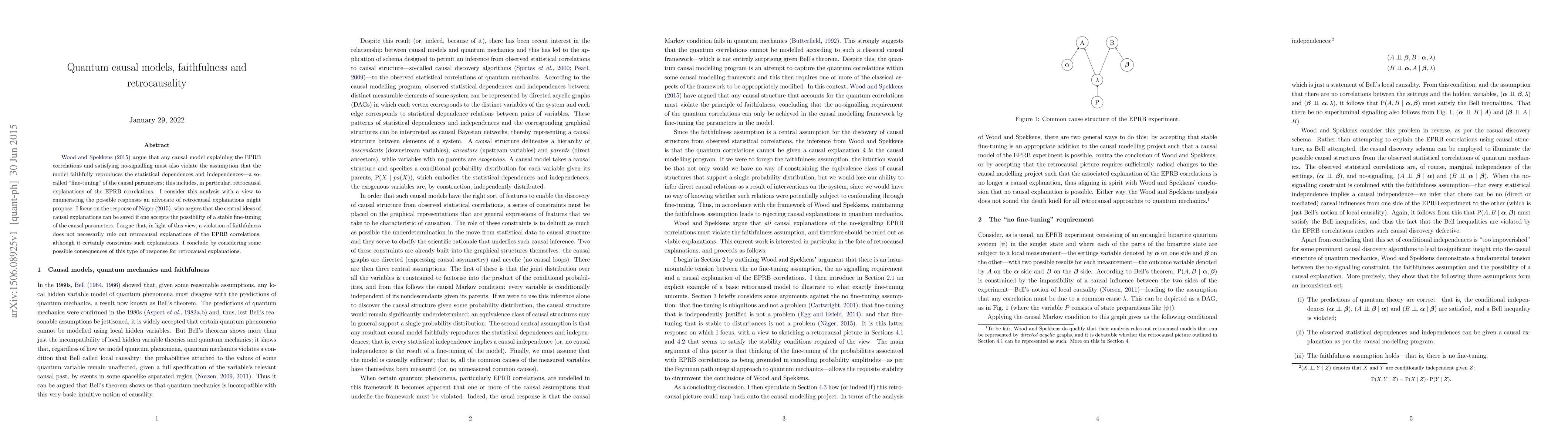 This paper explores the implications of Wood and Spekkens' argument that causal models explaining EPRB correlations must violate faithfulness, including retrocausal explanations. It examines Näger's response that stable fine-tuning of causal parameters can salvage central causal ideas, concluding that while faithfulness violations constrain retrocausal explanations, they do not necessarily rule them out.