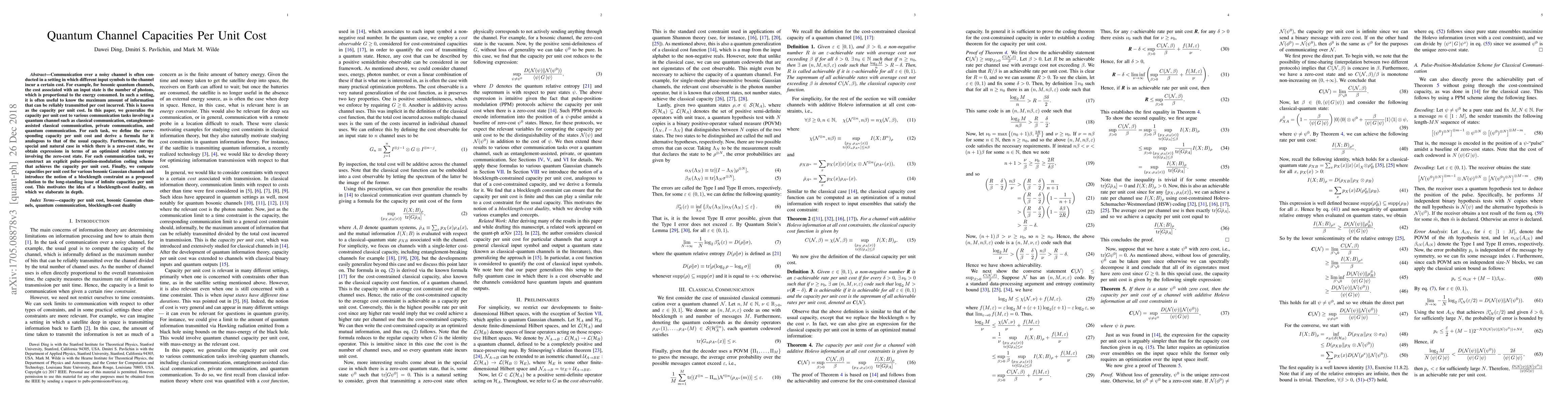 Communication over a noisy channel is often conducted in a setting in which different input symbols to the channel incur a certain cost. For example, for bosonic quantum channels, the cost associated with an input state is the number of photons, which is proportional to the energy consumed. In such a setting, it is often useful to know the maximum amount of information that can be reliably transmitted per cost incurred. This is known as the capacity per unit cost. In this paper, we generalize the capacity per unit cost to various communication tasks involving a quantum channel such as classical communication, entanglement-assisted classical communication, private communication, and quantum communication. For each task, we define the corresponding capacity per unit cost and derive a formula for it analogous to that of the usual capacity. Furthermore, for the special and natural case in which there is a zero-cost state, we obtain expressions in terms of an optimized relative entropy involving the zero-cost state. For each communication task, we construct an explicit pulse-position-modulation coding scheme that achieves the capacity per unit cost. Finally, we compute capacities per unit cost for various bosonic Gaussian channels and introduce the notion of a blocklength constraint as a proposed solution to the long-standing issue of infinite capacities per unit cost. This motivates the idea of a blocklength-cost duality, on which we elaborate in depth.