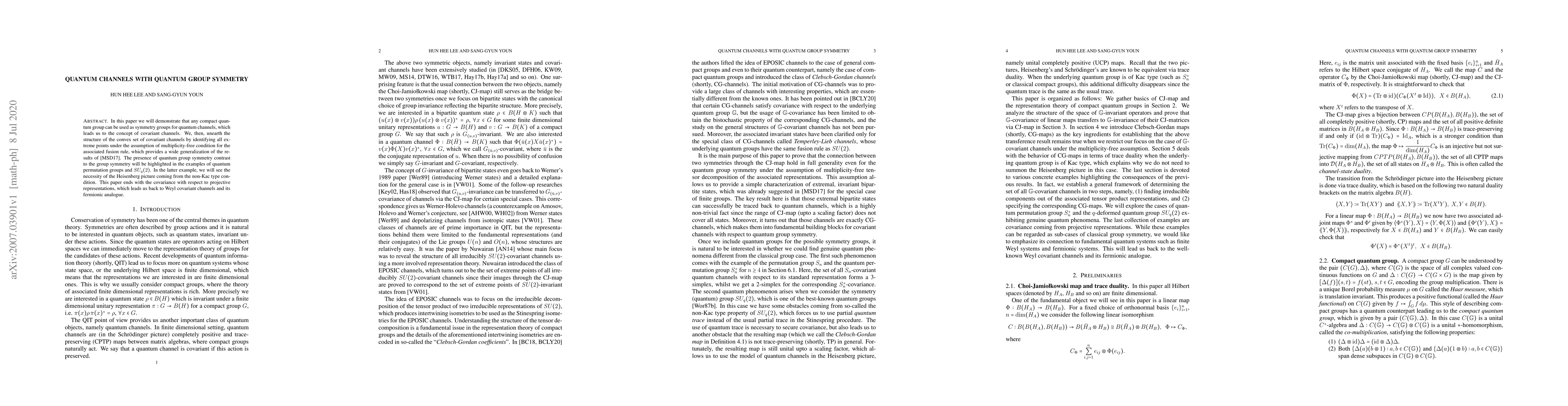 Researchers demonstrate that compact quantum groups can be used as symmetry groups for quantum channels, leading to a new concept of covariant channels and revealing the structure of extreme points in the convex set of these channels.