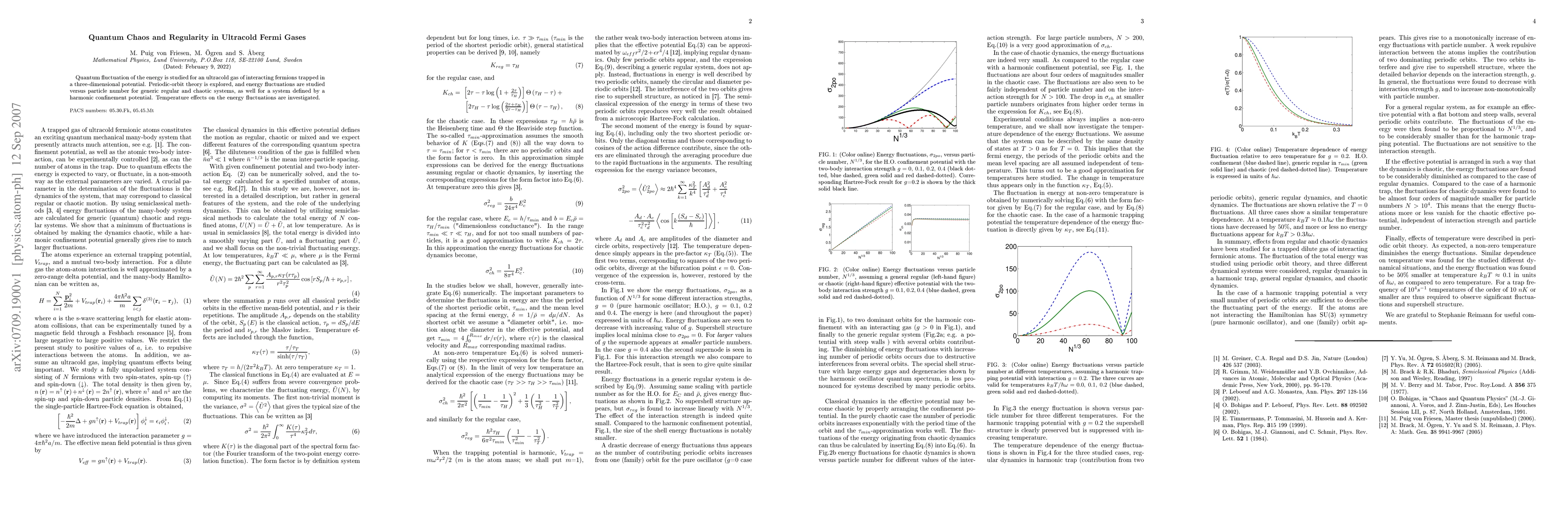 Quantum fluctuation of the energy is studied for an ultracold gas of interacting fermions trapped in a three-dimensional potential. Periodic-orbit theory is explored, and energy fluctuations are studied versus particle number for generic regular and chaotic systems, as well for a system defined by a harmonic confinement potential. Temperature effects on the energy fluctuations are investigated.