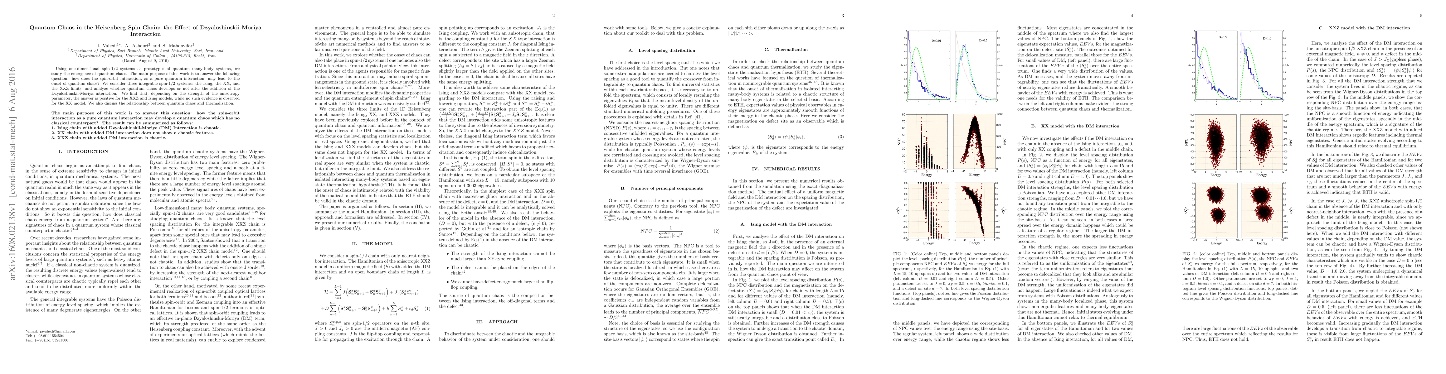 This paper investigates quantum chaos in spin-1/2 Heisenberg spin chains with Dzyaloshinskii-Moriya interaction, finding that quantum chaos emerges in the XXZ and Ising models but not in the XX model, and explores its connection to thermalization.