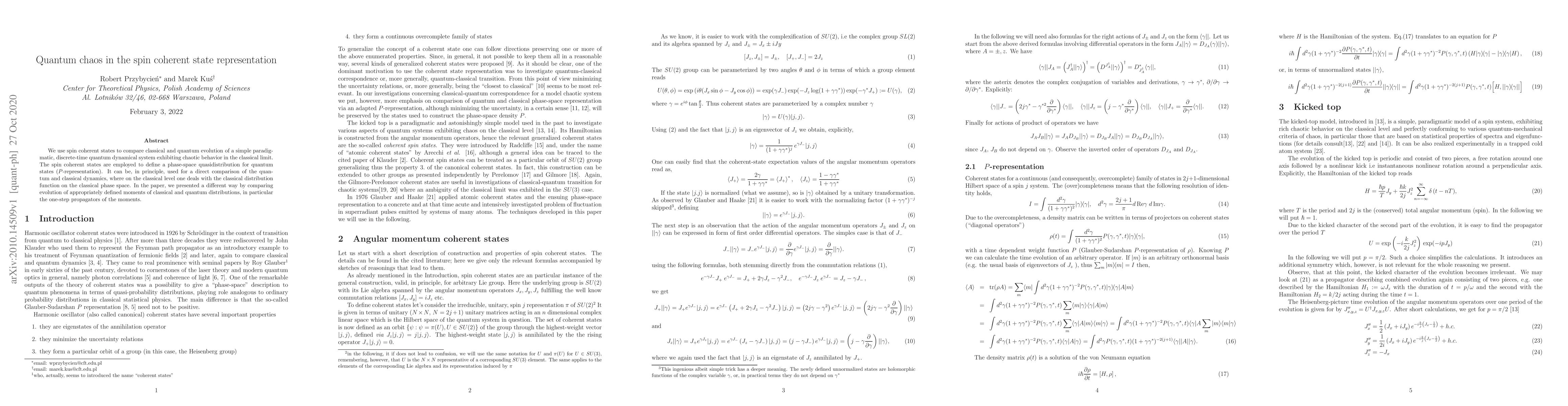 We use spin coherent states to compare classical and quantum evolution of a simple paradigmatic, discrete-time quantum dynamical system exhibiting chaotic behavior in the classical limit. The spin coherent states are employed to define a phase-space quasidistribution for quantum states (P-representation). It can be, in principle, used for a direct comparison of the quantum and classical dynamics, where on the classical level one deals with the classical distribution function on the classical phase space. In the paper, we presented a different way by comparing evolution of appropriately defined moments of classical and quantum distributions, in particular the one-step propagators of the moments.