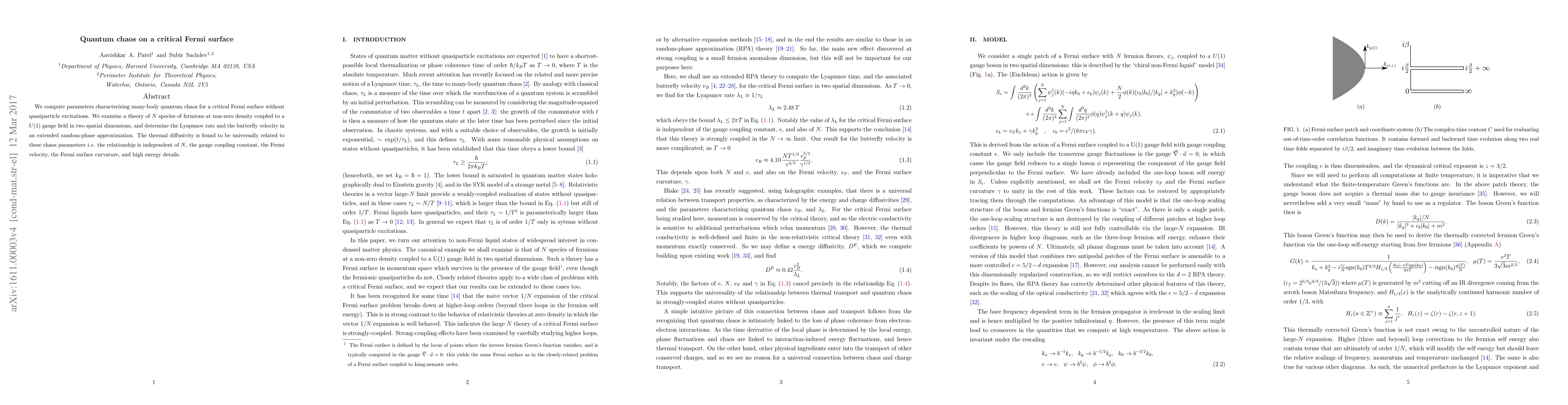 Researchers studied a new type of quantum behavior called chaos in a critical state of fermions without quasiparticles. They found that the thermal diffusivity is universally related to two key chaos parameters, regardless of other factors like particle number or energy details.