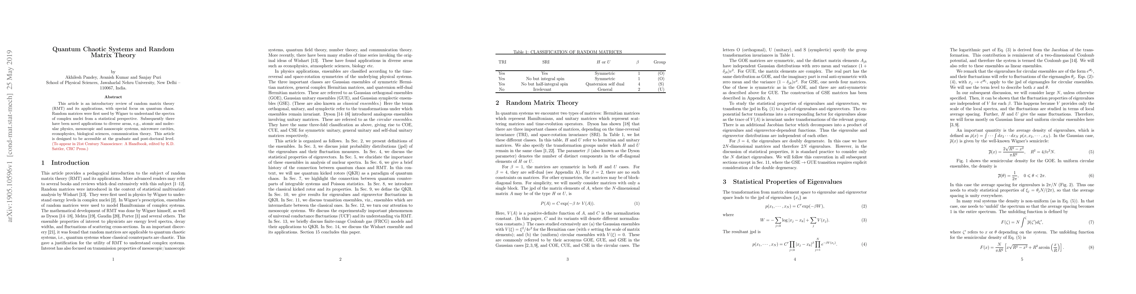 The paper provides an introductory review of random matrix theory (RMT) and its applications, particularly in quantum chaos, with a focus on making it accessible to graduate and post-doctoral levels.