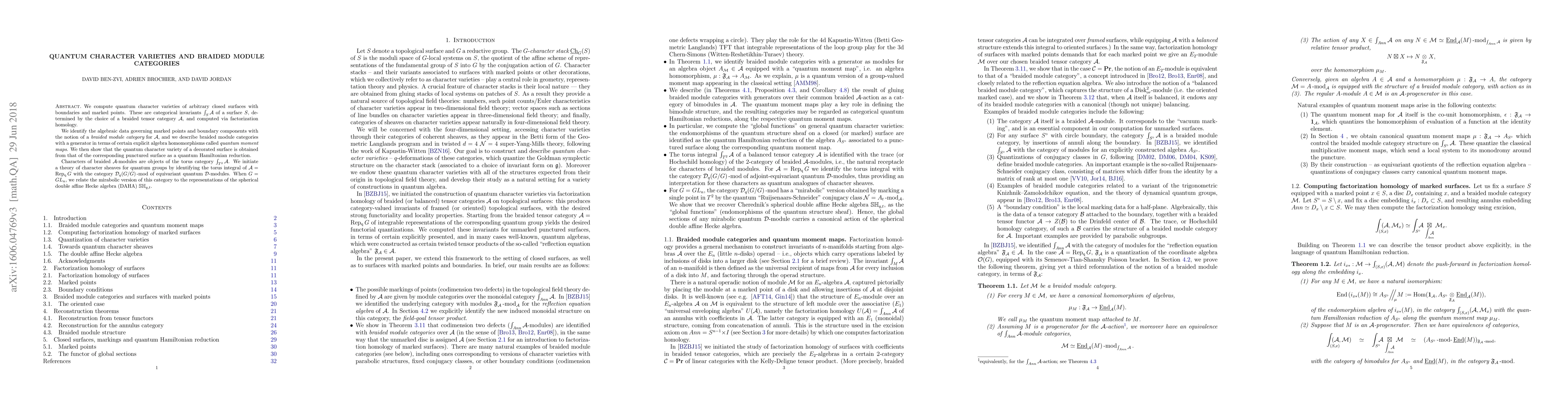 Researchers compute quantum character varieties of closed surfaces with boundaries and marked points, relating them to braided module categories and quantum moment maps, with implications for theory of character sheaves and representations of quantum groups.