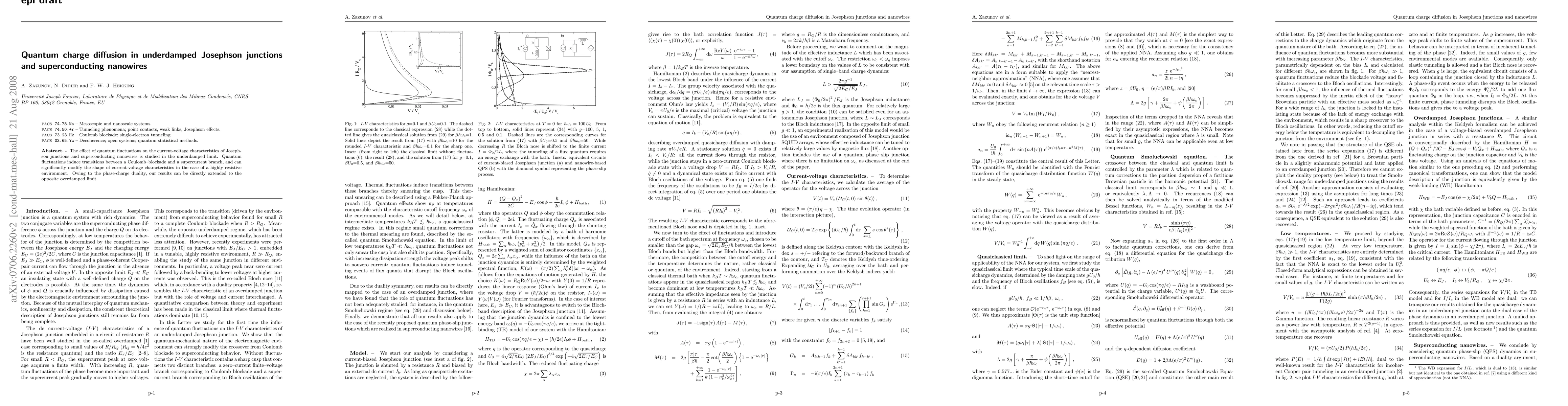 This paper investigates quantum fluctuations' impact on current-voltage characteristics in underdamped Josephson junctions and superconducting nanowires, revealing how these fluctuations induce transitions between Coulomb-blockade and supercurrent states, significantly altering current-voltage profiles in resistive environments. The findings are applicable to the overdamped limit due to phase-charge duality.