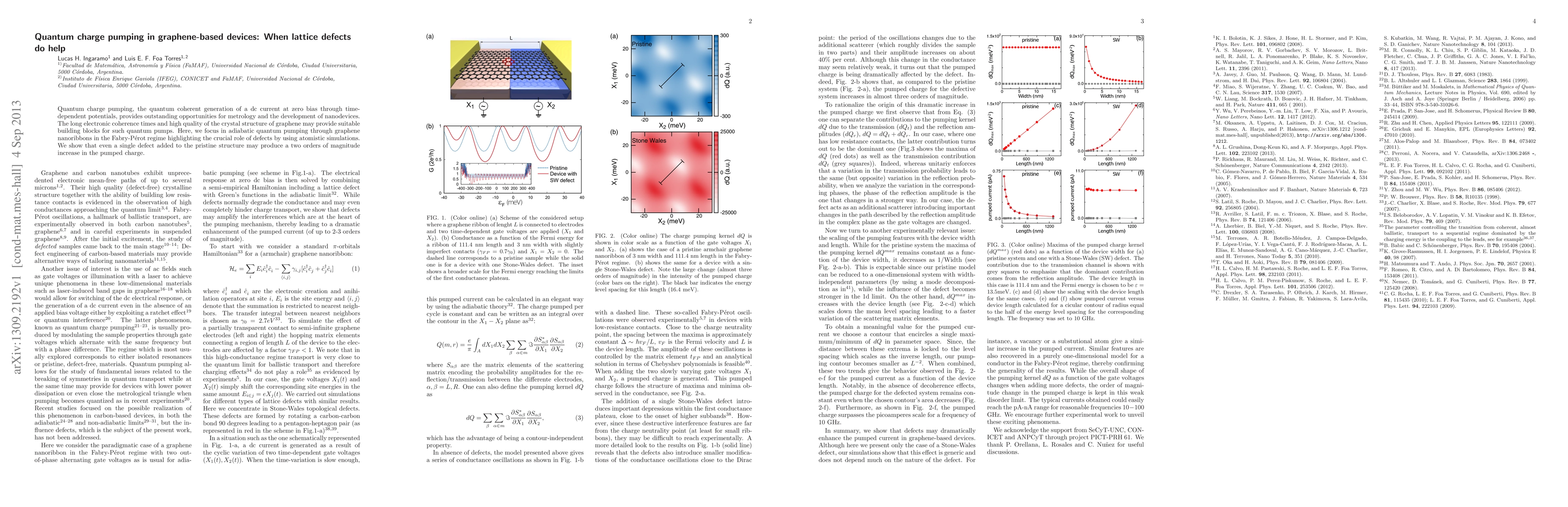This study investigates quantum charge pumping in graphene nanoribbons, revealing that lattice defects can significantly enhance the pumped charge, achieving a two orders of magnitude increase compared to defect-free structures, as demonstrated through atomistic simulations.
