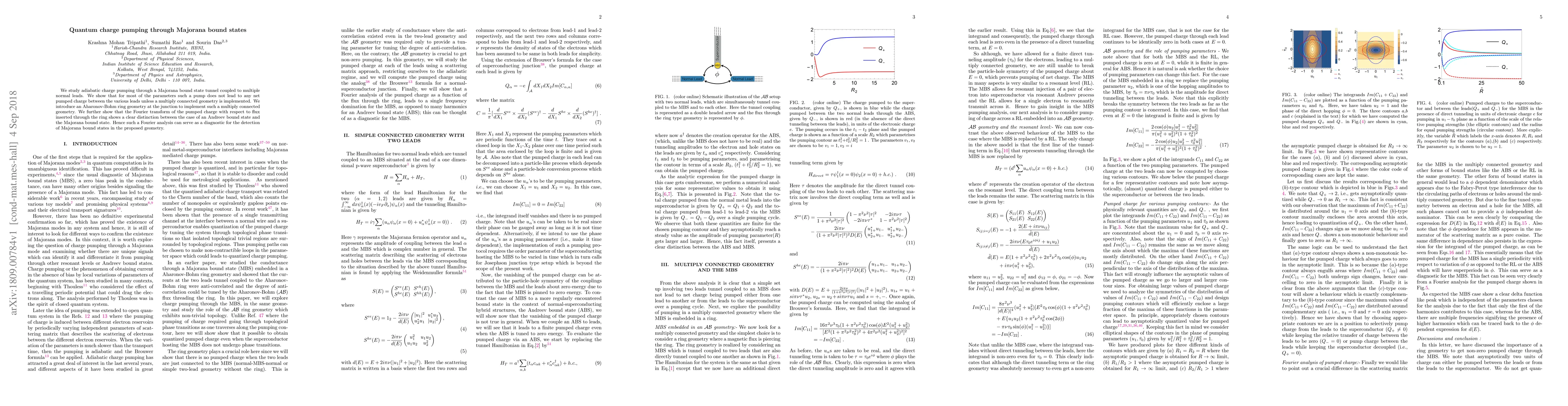 This paper investigates adiabatic charge pumping through a Majorana bound state connected to multiple normal leads, demonstrating that a net charge pump is generally absent unless a multiply connected geometry is used. The authors propose an Aharonov-Bohm ring to achieve this, and show that Fourier analysis of pumped charge with respect to flux reveals differences between Andreev and Majorana bound states, providing a method for detecting Majorana states.
