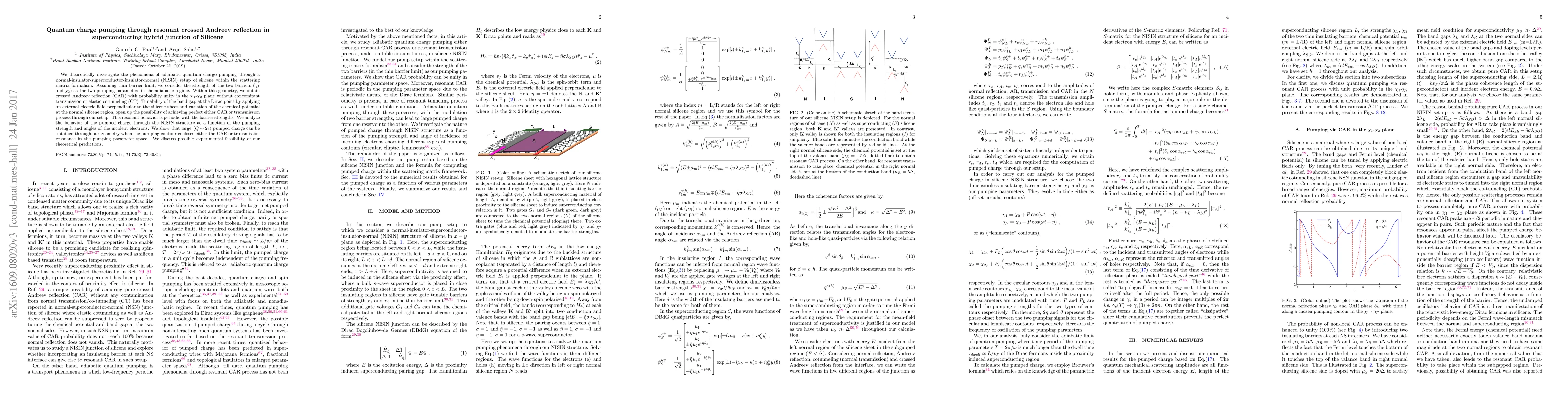 Researchers investigated quantum charge pumping through a silicene superconducting hybrid junction using resonant crossed Andreev reflection, achieving large pumped charges of up to 2e and perfect transmission or reflection with tunable band gap and chemical potential.