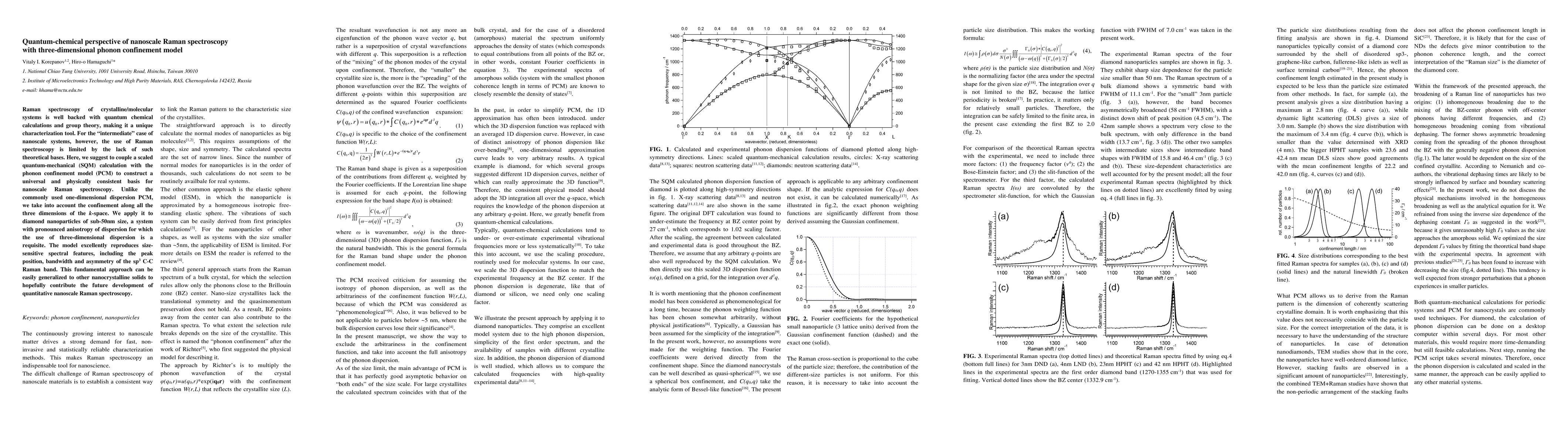 This paper proposes a three-dimensional phonon confinement model coupled with scaled quantum-mechanical calculations to provide a theoretical basis for nanoscale Raman spectroscopy. The model accurately reproduces size-dependent spectral features in diamond nanoparticles, suggesting its potential for broader applications in nanocrystalline solids.