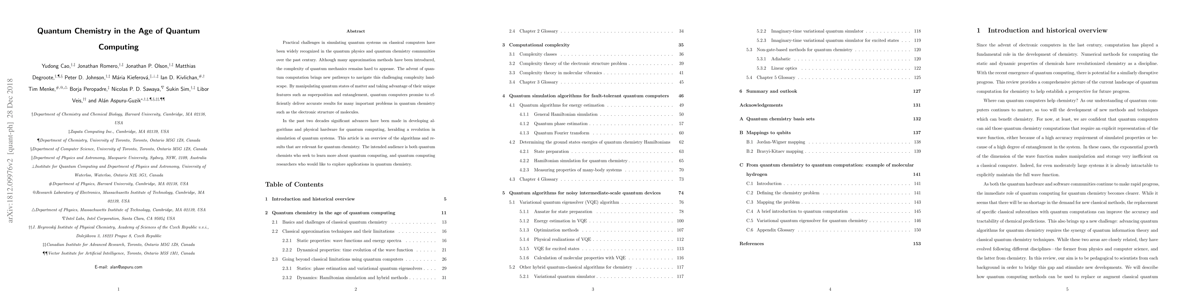 This paper provides an overview of quantum computing algorithms and their potential to revolutionize quantum chemistry by efficiently solving complex problems like electronic structure of molecules. It aims to bridge knowledge between quantum chemists and quantum computing researchers.
