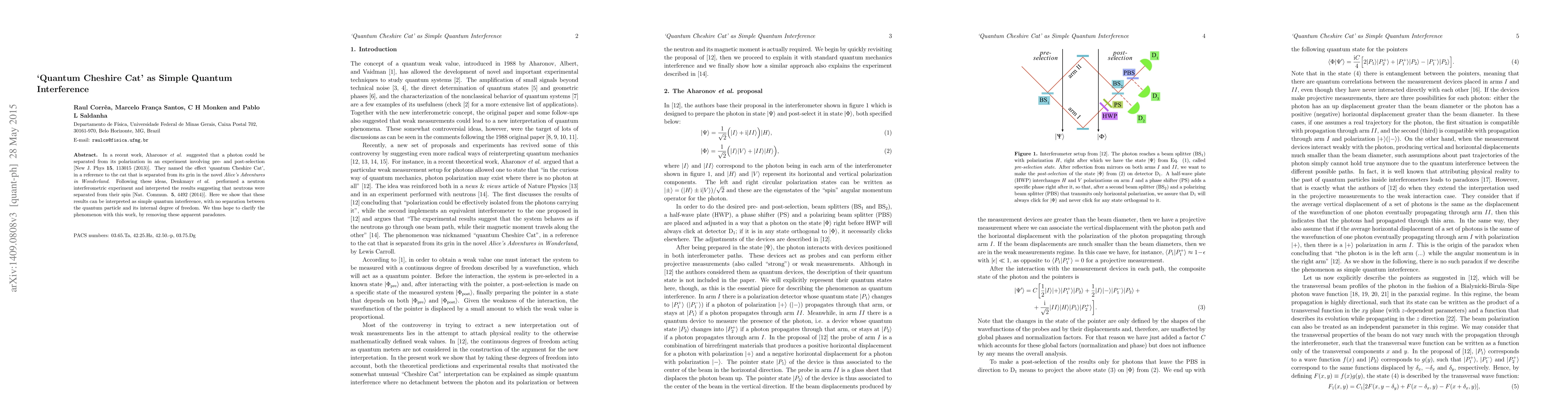 In a recent work, Aharonov et al. suggested that a photon could be separated from its polarization in an experiment involving pre- and post-selection [New J. Phys 15, 113015 (2013)]. They named the effect 'quantum Cheshire Cat', in a reference to the cat that is separated from its grin in the novel Alice's Adventures in Wonderland. Following these ideas, Denkmayr et al. performed a neutron interferometric experiment and interpreted the results suggesting that neutrons were separated from their spin [Nat. Commun. 5, 4492 (2014)]. Here we show that these results can be interpreted as simple quantum interference, with no separation between the quantum particle and its internal degree of freedom. We thus hope to clarify the phenomenon with this work, by removing these apparent paradoxes.