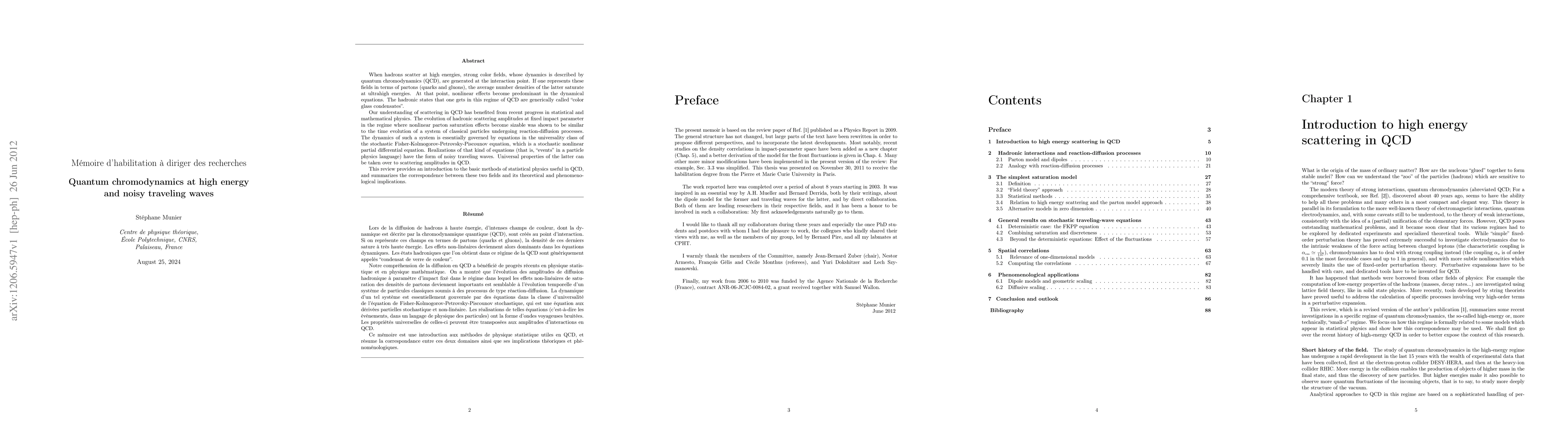 When hadrons scatter at high energies, strong color fields, whose dynamics is described by quantum chromodynamics (QCD), are generated at the interaction point. If one represents these fields in terms of partons (quarks and gluons), the average number densities of the latter saturate at ultrahigh energies. At that point, nonlinear effects become predominant in the dynamical equations. The hadronic states that one gets in this regime of QCD are generically called "color glass condensates". Our understanding of scattering in QCD has benefited from recent progress in statistical and mathematical physics. The evolution of hadronic scattering amplitudes at fixed impact parameter in the regime where nonlinear parton saturation effects become sizable was shown to be similar to the time evolution of a system of classical particles undergoing reaction-diffusion processes. The dynamics of such a system is essentially governed by equations in the universality class of the stochastic Fisher-Kolmogorov-Petrovsky-Piscounov equation, which is a stochastic nonlinear partial differential equation. Realizations of that kind of equations (that is, "events" in a particle physics language) have the form of noisy traveling waves. Universal properties of the latter can be taken over to scattering amplitudes in QCD. This review provides an introduction to the basic methods of statistical physics useful in QCD, and summarizes the correspondence between these two fields and its theoretical and phenomenological implications.