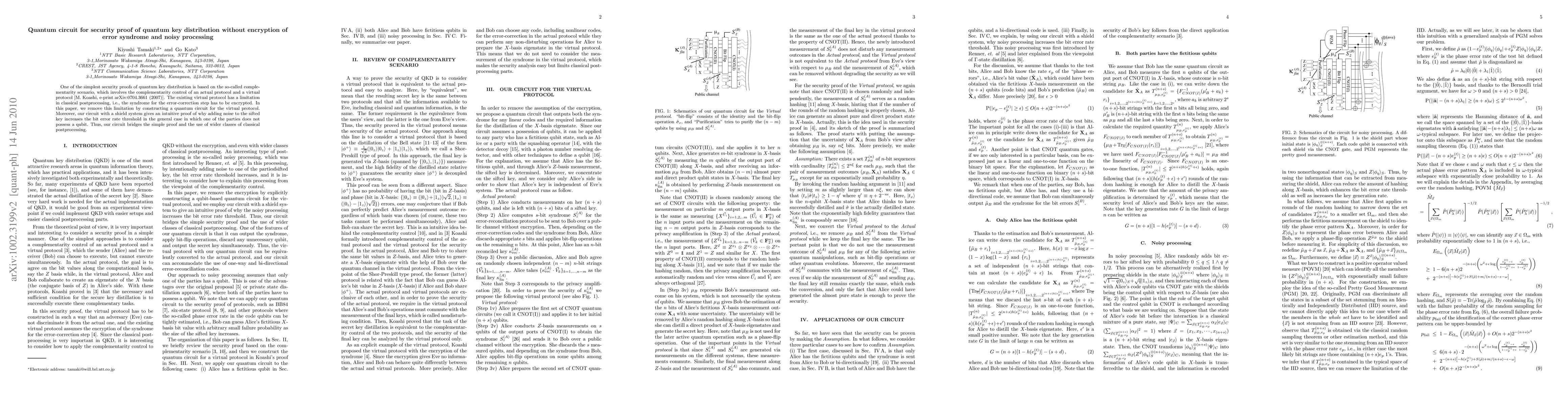 One of the simplest security proofs of quantum key distribution is based on the so-called complementarity scenario, which involves the complementarity control of an actual protocol and a virtual protocol [M. Koashi, e-print arXiv:0704.3661 (2007)]. The existing virtual protocol has a limitation in classical postprocessing, i.e., the syndrome for the error-correction step has to be encrypted. In this paper, we remove this limitation by constructing a quantum circuit for the virtual protocol. Moreover, our circuit with a shield system gives an intuitive proof of why adding noise to the sifted key increases the bit error rate threshold in the general case in which one of the parties does not possess a qubit. Thus, our circuit bridges the simple proof and the use of wider classes of classical postprocessing.