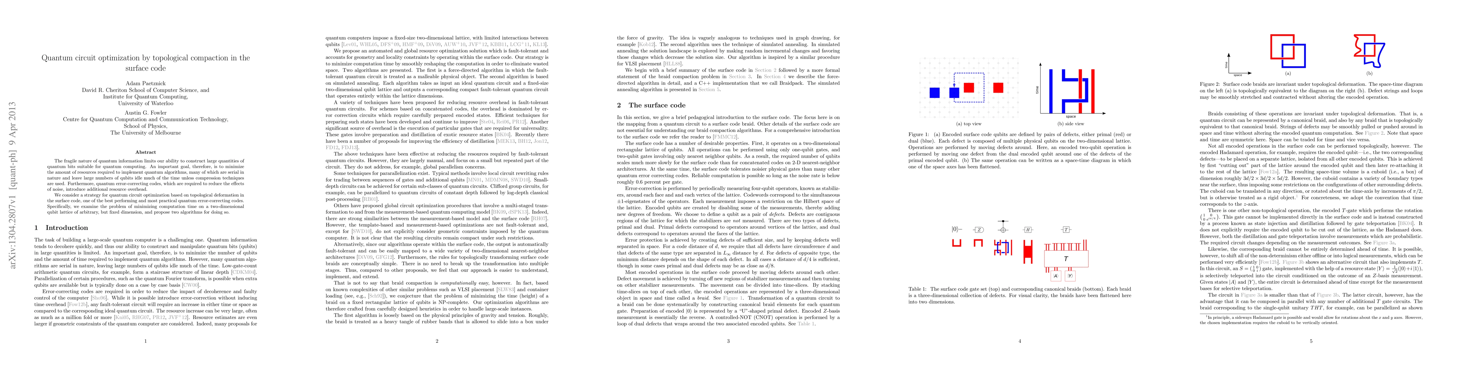 The fragile nature of quantum information limits our ability to construct large quantities of quantum bits suitable for quantum computing. An important goal, therefore, is to minimize the amount of resources required to implement quantum algorithms, many of which are serial in nature and leave large numbers of qubits idle much of the time unless compression techniques are used. Furthermore, quantum error-correcting codes, which are required to reduce the effects of noise, introduce additional resource overhead. We consider a strategy for quantum circuit optimization based on topological deformation in the surface code, one of the best performing and most practical quantum error-correcting codes. Specifically, we examine the problem of minimizing computation time on a two-dimensional qubit lattice of arbitrary, but fixed dimension, and propose two algorithms for doing so.