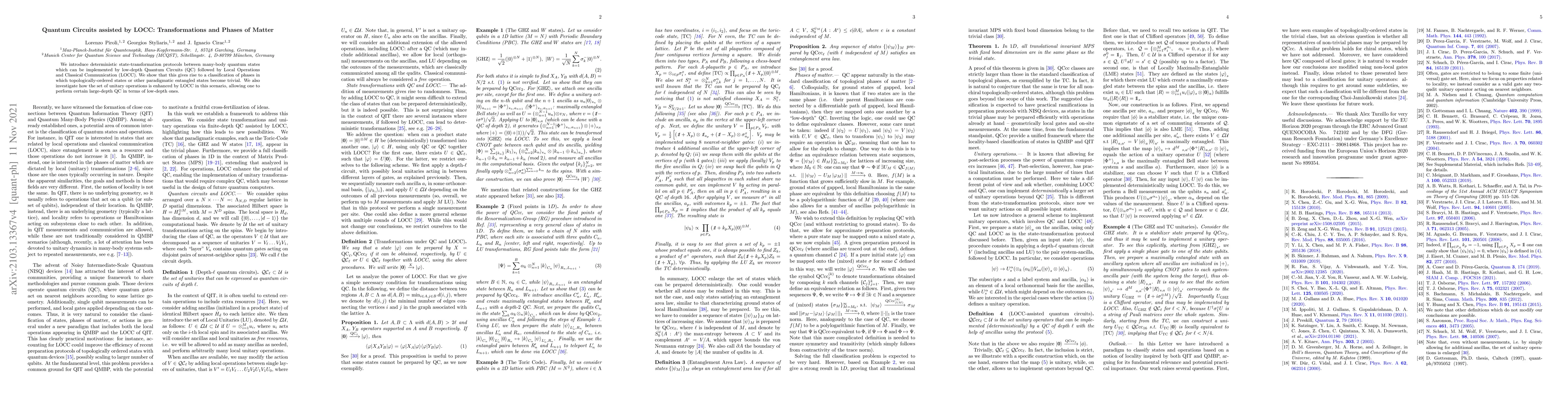 Researchers developed protocols for deterministic state transformations in quantum circuits using low-depth Quantum Circuits and Local Operations and Classical Communication, leading to a new classification of phases in matter.
