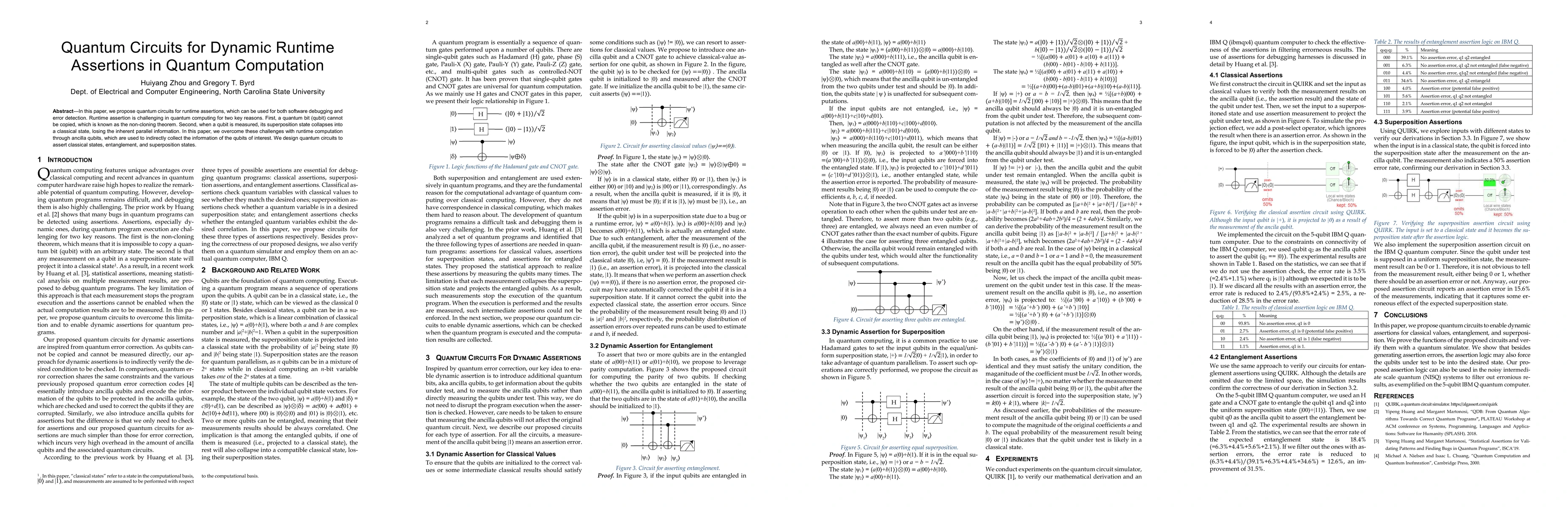 This paper introduces quantum circuits for runtime assertions in quantum computing, addressing the challenges posed by the no-cloning theorem and state collapse upon measurement using ancilla qubits to indirectly gather information. It presents quantum circuits to assert classical, entangled, and superposition states for debugging and error detection.