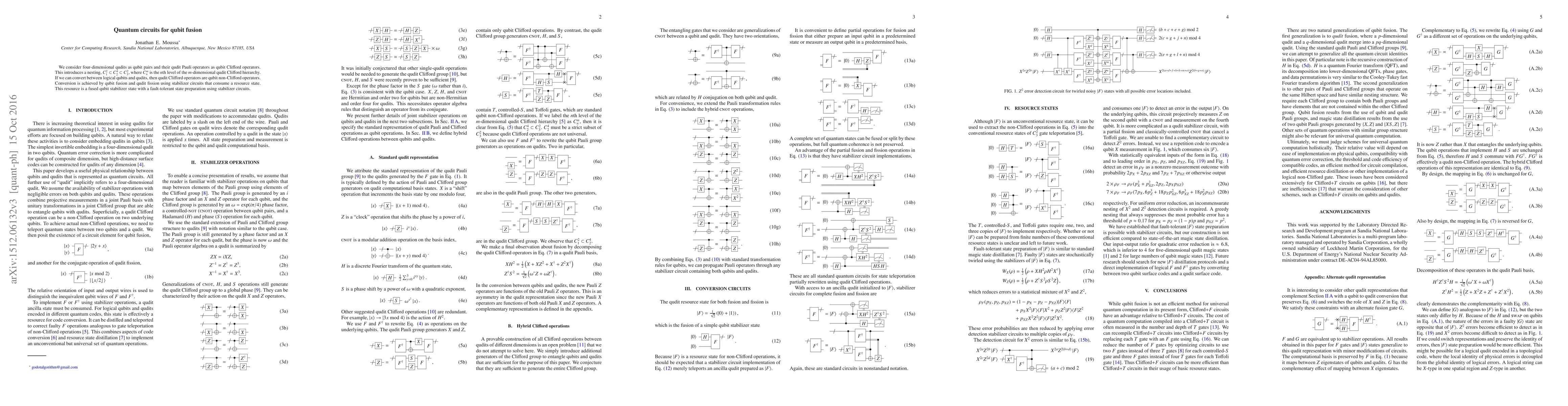 The paper presents quantum circuits for qubit fusion, introducing a method to convert between logical qubits and qudits using stabilizer circuits and a fault-tolerant resource state preparation.