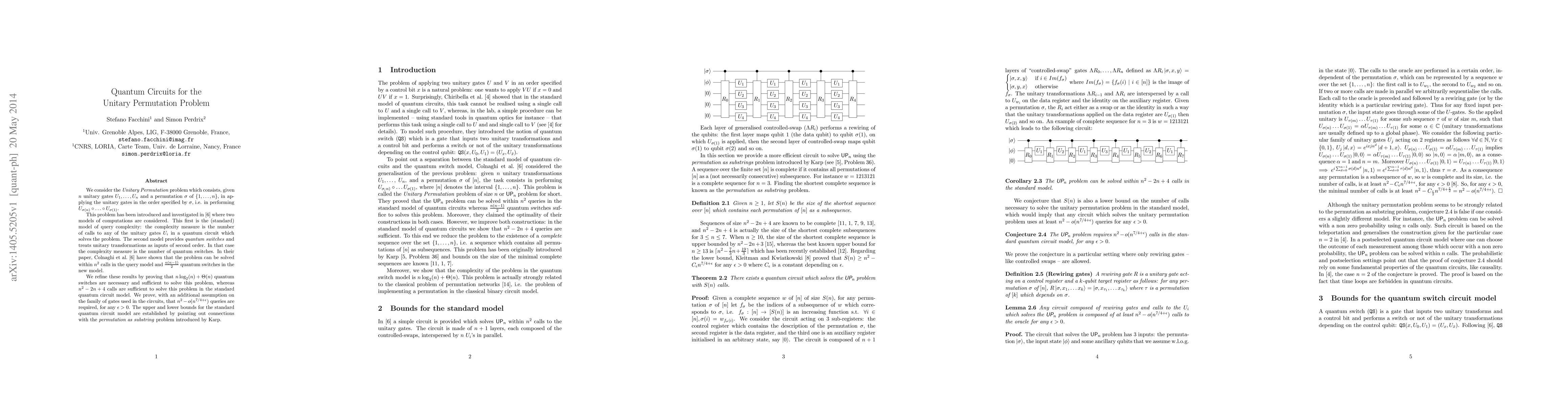 Researchers investigate the complexity of solving the Unitary Permutation problem using quantum circuits, establishing bounds on the number of quantum switches and queries required to solve it efficiently.