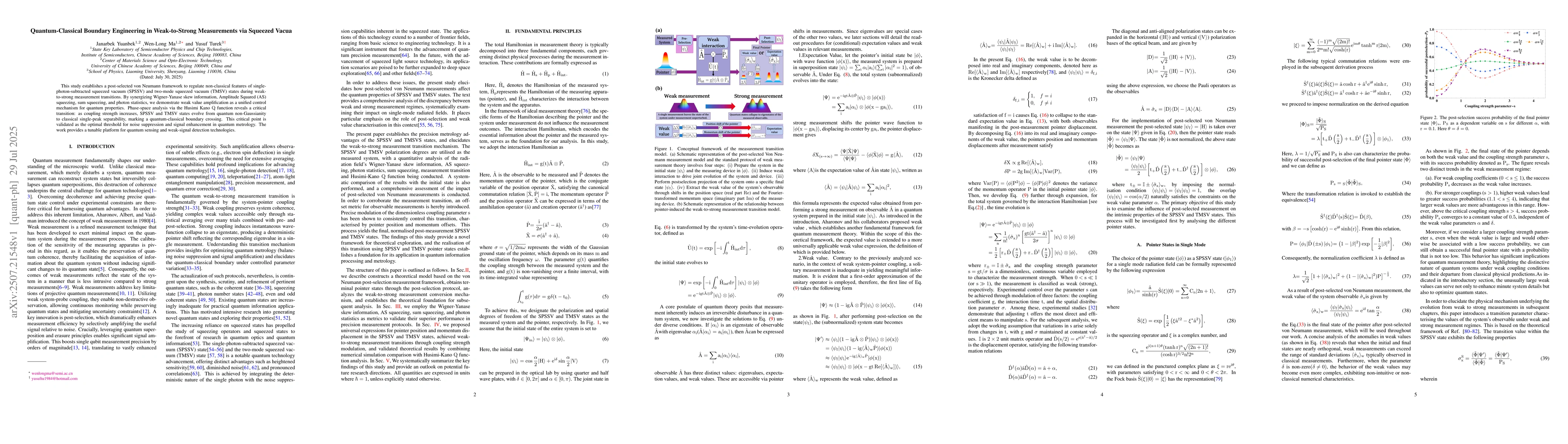 This study establishes a post-selected von Neumann framework to regulate non-classical features of single-photon-subtracted squeezed vacuum (SPSSV) and two-mode squeezed vacuum (TMSV) states during weak-to-strong measurement transitions. By synergizing Wigner-Yanase skew information, Amplitude Squared (AS) squeezing, sum squeezing, and photon statistics, we demonstrate weak value amplification as a unified control mechanism for quantum properties. Phase-space analysis via the Husimi Kano Q function reveals a critical transition: as coupling strength increases, SPSSV and TMSV states evolve from quantum non-Gaussianity to classical single-peak separability, marking a quantum-classical boundary crossing. This critical point is validated as the optimal threshold for noise suppression and signal enhancement in quantum metrology. The work provides a tunable platform for quantum sensing and weak-signal detection technologies.