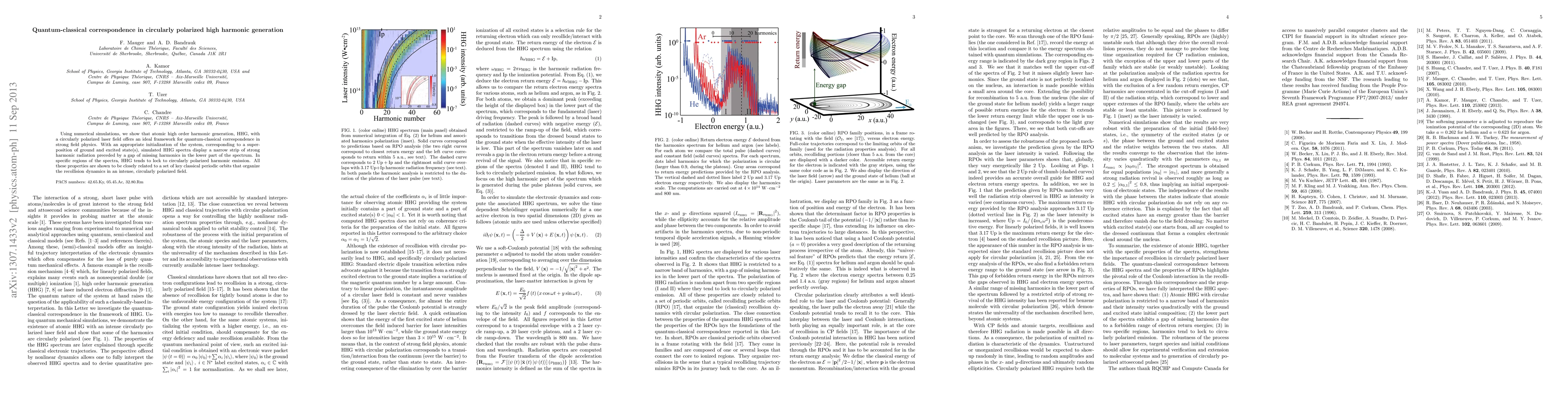 This study demonstrates that high harmonic generation (HHG) with circularly polarized laser fields provides a framework for quantum-classical correspondence in strong field physics, revealing a narrow strip of strong harmonic radiation with a gap in the lower spectrum linked to specific classical periodic orbits.