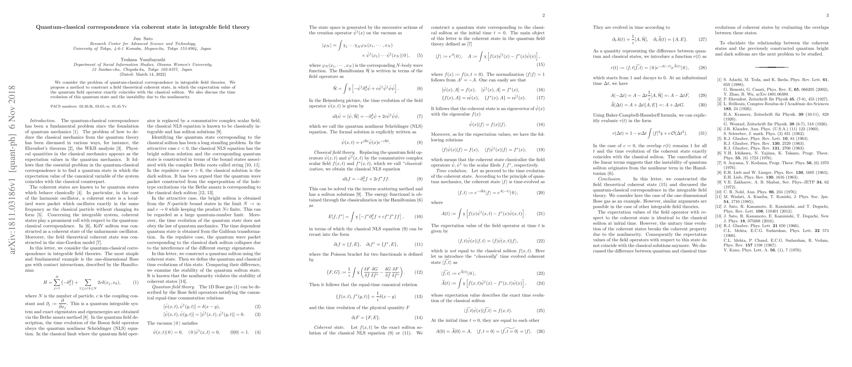 The main technical contribution of this work is the construction of a field theoretical coherent state that classically corresponds to soliton solutions in integrable field theories.