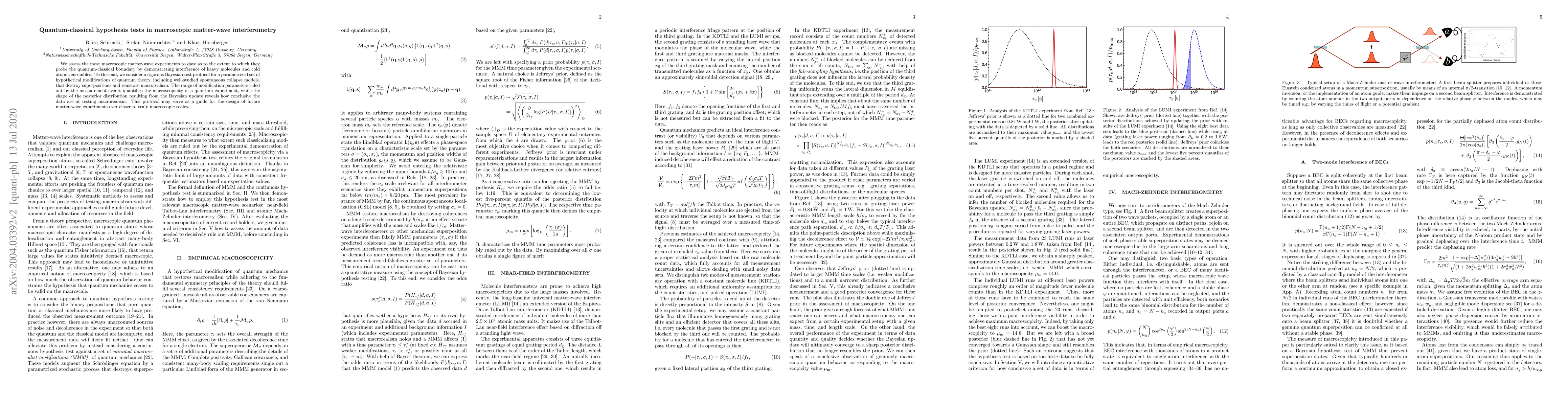 This paper evaluates macroscopic matter-wave experiments to determine their ability to probe the quantum-classical boundary through interference phenomena. It employs a Bayesian test protocol to assess hypothetical modifications of quantum theory, ruling out certain parameters and providing a measure of the experiment's macroscopicity.