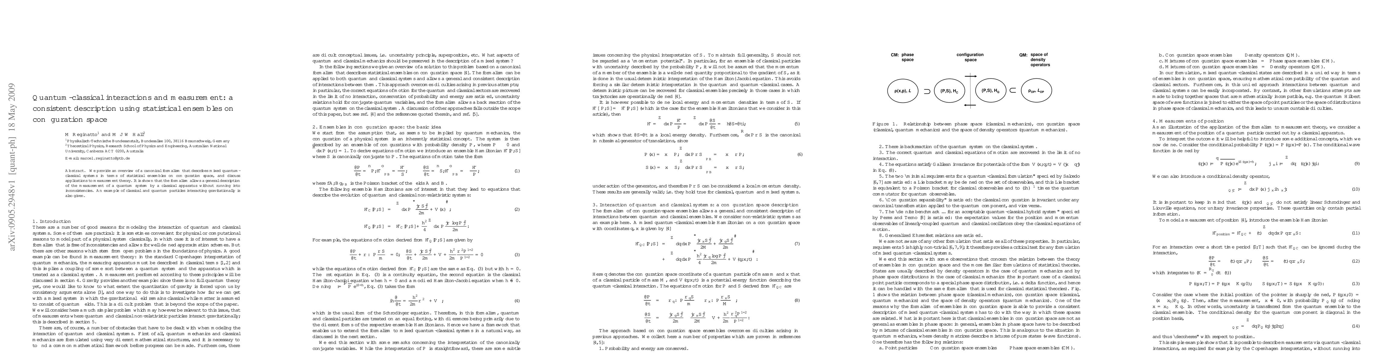 This paper introduces a canonical formalism for mixed quantum-classical systems using statistical ensembles on configuration space, demonstrating its application to measurement theory and resolving inconsistencies in quantum-classical interactions. An example of gravitational interaction between classical and quantum particles is provided.