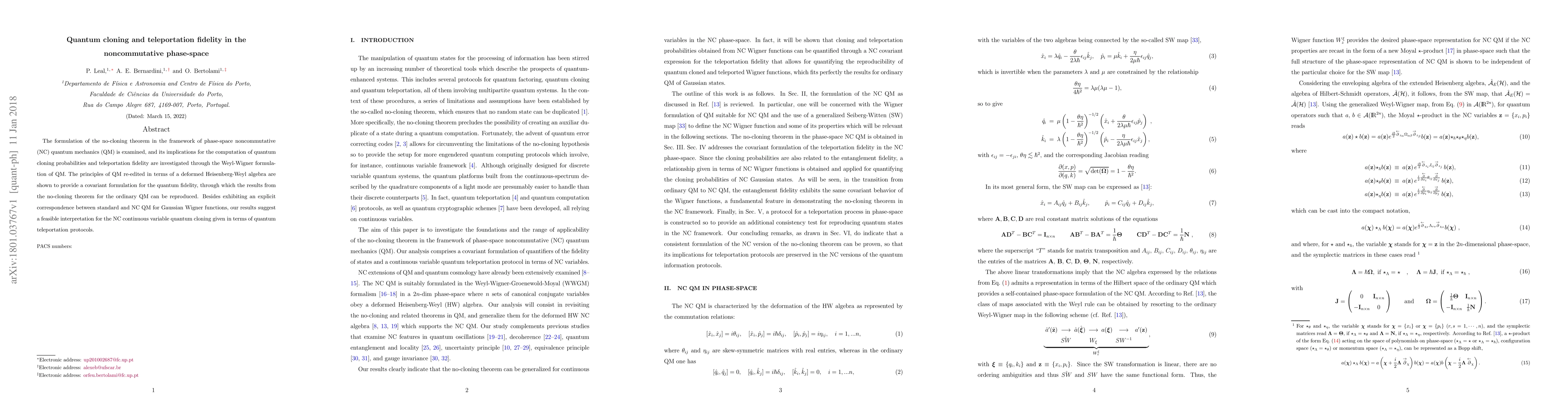 This paper explores the no-cloning theorem within the context of noncommutative phase-space quantum mechanics, demonstrating its implications for quantum cloning probabilities and teleportation fidelity using the Weyl-Wigner formulation. It reveals a covariant formulation for quantum fidelity and suggests a feasible interpretation of noncommutative continuous variable quantum cloning through quantum teleportation protocols.