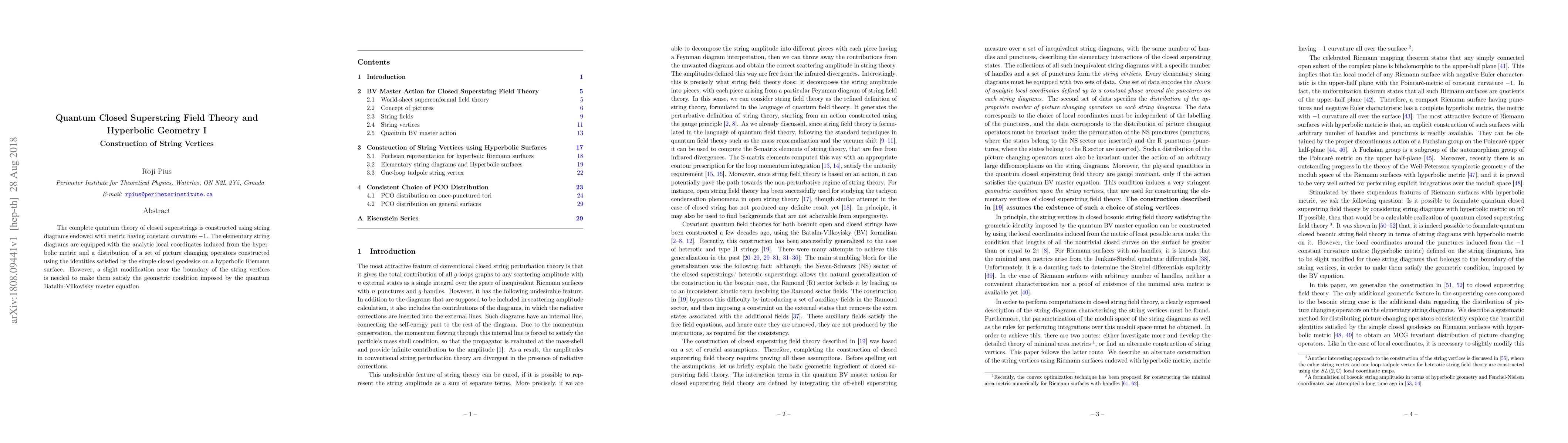 This work is significant as it provides a novel approach to constructing the quantum theory of closed superstrings using hyperbolic geometry, potentially leading to new insights in string theory and quantum field theory.