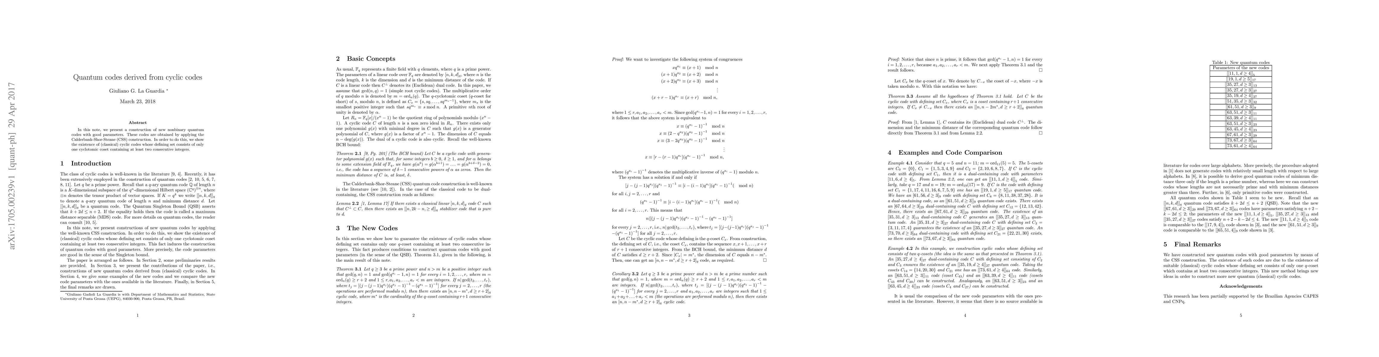 Summary: This paper constructs new nonbinary quantum codes using the CSS construction, leveraging cyclic codes defined by a single cyclotomic coset with at least two consecutive integers for optimal parameters.