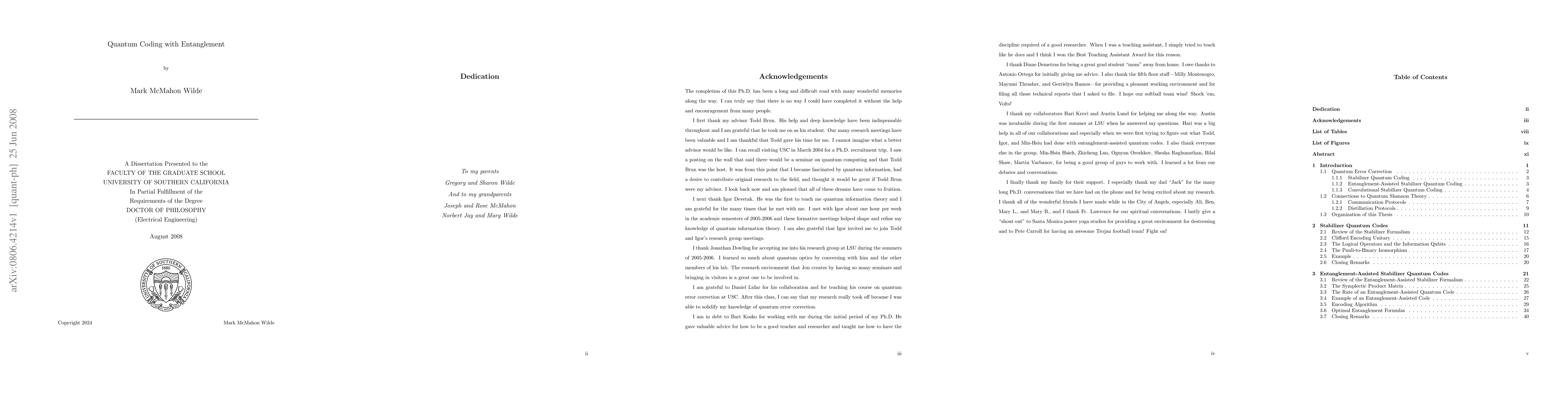 Quantum error-correcting codes will be the ultimate enabler of a future quantum computing or quantum communication device. This theory forms the cornerstone of practical quantum information theory. We provide several contributions to the theory of quantum error correction--mainly to the theory of "entanglement-assisted" quantum error correction where the sender and receiver share entanglement in the form of entangled bits (ebits) before quantum communication begins. Our first contribution is an algorithm for encoding and decoding an entanglement-assisted quantum block code. We then give several formulas that determine the optimal number of ebits for an entanglement-assisted code. The major contribution of this thesis is the development of the theory of entanglement-assisted quantum convolutional coding. A convolutional code is one that has memory and acts on an incoming stream of qubits. We explicitly show how to encode and decode a stream of information qubits with the help of ancilla qubits and ebits. Our entanglement-assisted convolutional codes include those with a Calderbank-Shor-Steane structure and those with a more general structure. We then formulate convolutional protocols that correct errors in noisy entanglement. Our final contribution is a unification of the theory of quantum error correction--these unified convolutional codes exploit all of the known resources for quantum redundancy.