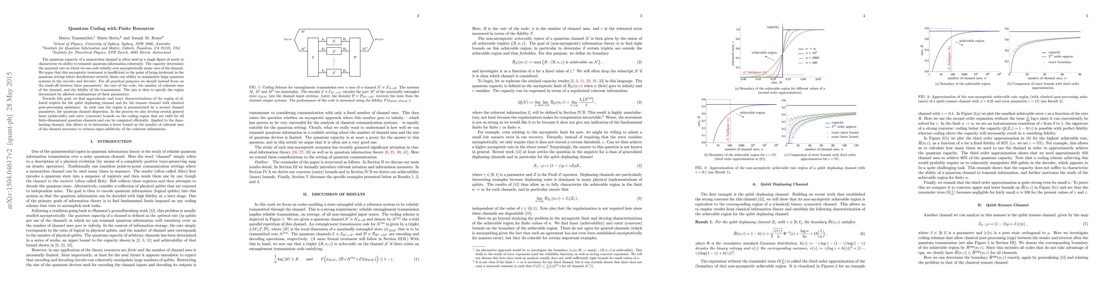 The quantum capacity of a memoryless channel is often used as a single figure of merit to characterize its ability to transmit quantum information coherently. The capacity determines the maximal rate at which we can code reliably over asymptotically many uses of the channel. We argue that this asymptotic treatment is insufficient to the point of being irrelevant in the quantum setting where decoherence severely limits our ability to manipulate large quantum systems in the encoder and decoder. For all practical purposes we should instead focus on the trade-off between three parameters: the rate of the code, the number of coherent uses of the channel, and the fidelity of the transmission. The aim is then to specify the region determined by allowed combinations of these parameters. Towards this goal, we find approximate and exact characterizations of the region of allowed triplets for the qubit dephasing channel and for the erasure channel with classical post-processing assistance. In each case the region is parametrized by a second channel parameter, the quantum channel dispersion. In the process we also develop several general inner (achievable) and outer (converse) bounds on the coding region that are valid for all finite-dimensional quantum channels and can be computed efficiently. Applied to the depolarizing channel, this allows us to determine a lower bound on the number of coherent uses of the channel necessary to witness super-additivity of the coherent information.