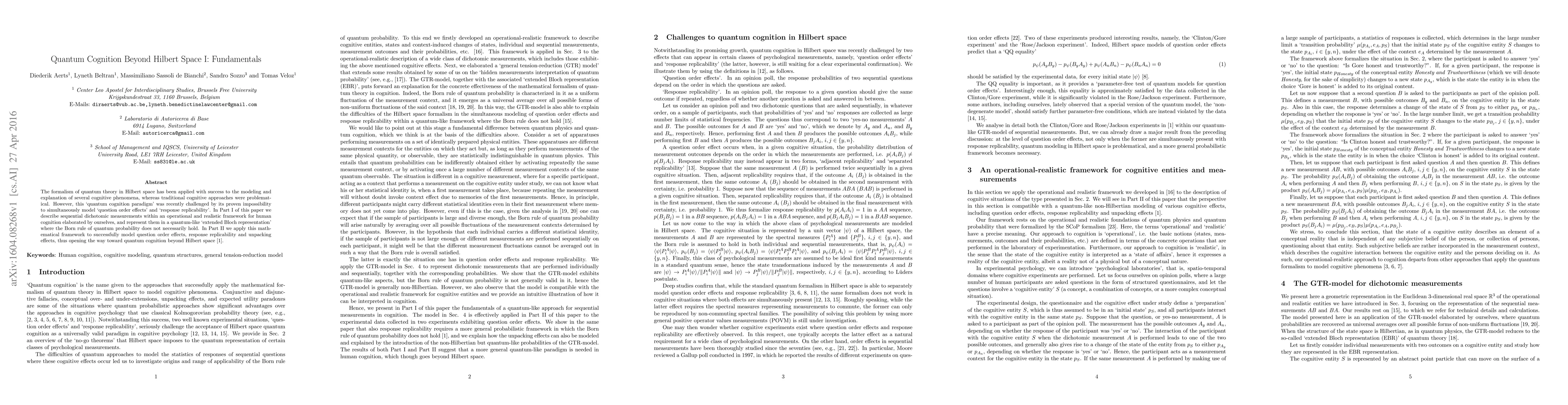The formalism of quantum theory in Hilbert space has been applied with success to the modeling and explanation of several cognitive phenomena, whereas traditional cognitive approaches were problematical. However, this 'quantum cognition paradigm' was recently challenged by its proven impossibility to simultaneously model 'question order effects' and 'response replicability'. In Part I of this paper we describe sequential dichotomic measurements within an operational and realistic framework for human cognition elaborated by ourselves, and represent them in a quantum-like 'extended Bloch representation' where the Born rule of quantum probability does not necessarily hold. In Part II we apply this mathematical framework to successfully model question order effects, response replicability and unpacking effects, thus opening the way toward quantum cognition beyond Hilbert space.