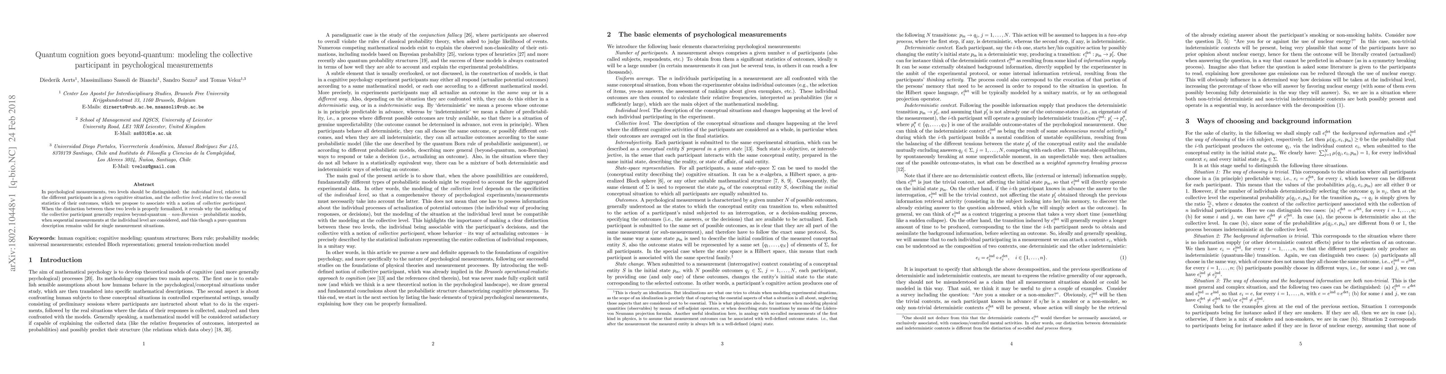 In psychological measurements, two levels should be distinguished: the 'individual level', relative to the different participants in a given cognitive situation, and the 'collective level', relative to the overall statistics of their outcomes, which we propose to associate with a notion of 'collective participant'. When the distinction between these two levels is properly formalized, it reveals why the modeling of the collective participant generally requires beyond-quantum - non-Bornian - probabilistic models, when sequential measurements at the individual level are considered, and this though a pure quantum description remains valid for single measurement situations.