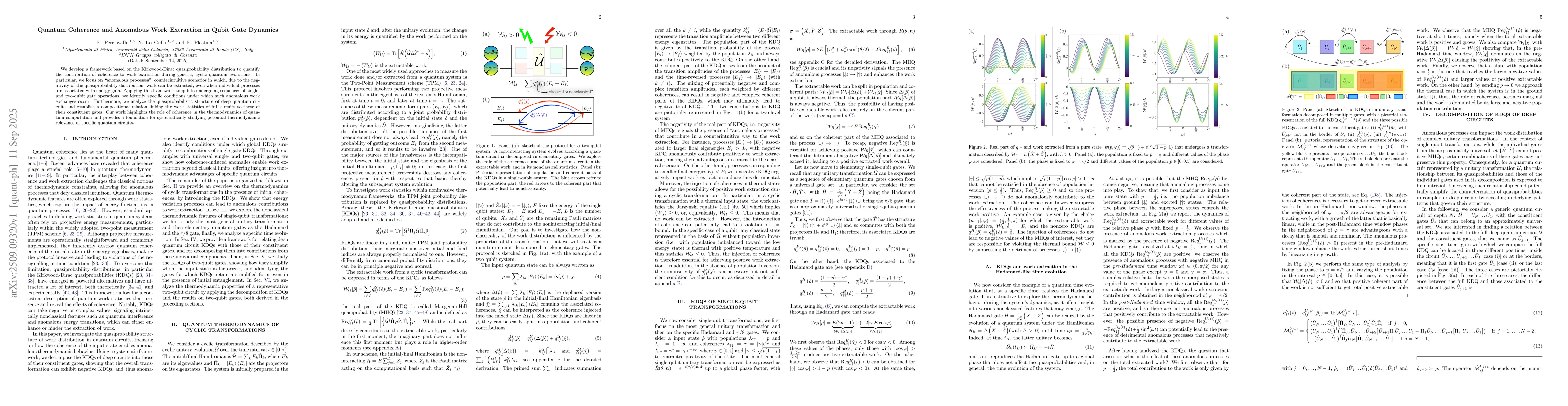 We develop a framework based on the Kirkwood-Dirac quasiprobability distribution to quantify the contribution of coherence to work extraction during generic, cyclic quantum evolutions. In particular, we focus on ``anomalous processes'', counterintuitive scenarios in which, due to the negativity of the quasiprobability distribution, work can be extracted, even when individual processes are associated with energy gain. Applying this framework to qubits undergoing sequences of single- and two-qubit gate operations, we identify specific conditions under which such anomalous work exchanges occur. Furthermore, we analyze the quasiprobabilistic structure of deep quantum circuits and establish a compositional relation linking the work statistics of full circuits to those of their constituent gates. Our work highlights the role of coherence in the thermodynamics of quantum computation and provides a foundation for systematically studying potential thermodynamic relevance of specific quantum circuits.