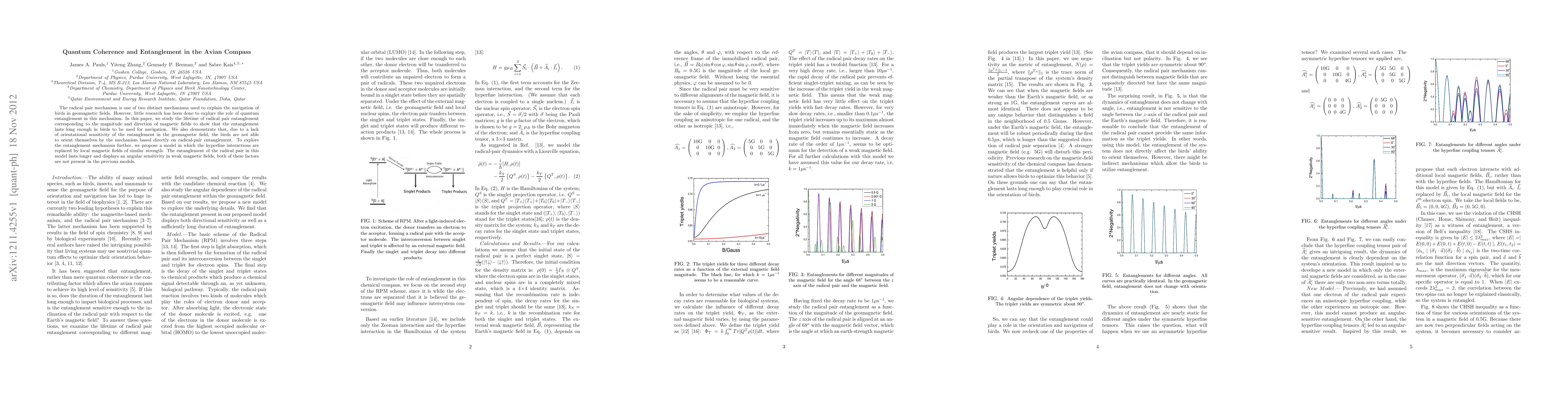The radical pair mechanism is one of two distinct mechanisms used to explain the navigation of birds in geomagnetic fields. However, little research has been done to explore the role of quantum entanglement in this mechanism. In this paper, we study the lifetime of radical pair entanglement corresponding to the magnitude and direction of magnetic fields to show that the entanglement lasts long enough in birds to be used for navigation. We also demonstrate that, due to a lack of orientational sensitivity of the entanglement in the geomagnetic field, the birds are not able to orient themselves by the mechanism based directly on radical-pair entanglement. To explore the entanglement mechanism further, we propose a model in which the hyperfine interactions are replaced by local magnetic fields of similar strength. The entanglement of the radical pair in this model lasts longer and displays an angular sensitivity in weak magnetic fields, both of these factors are not present in the previous models.