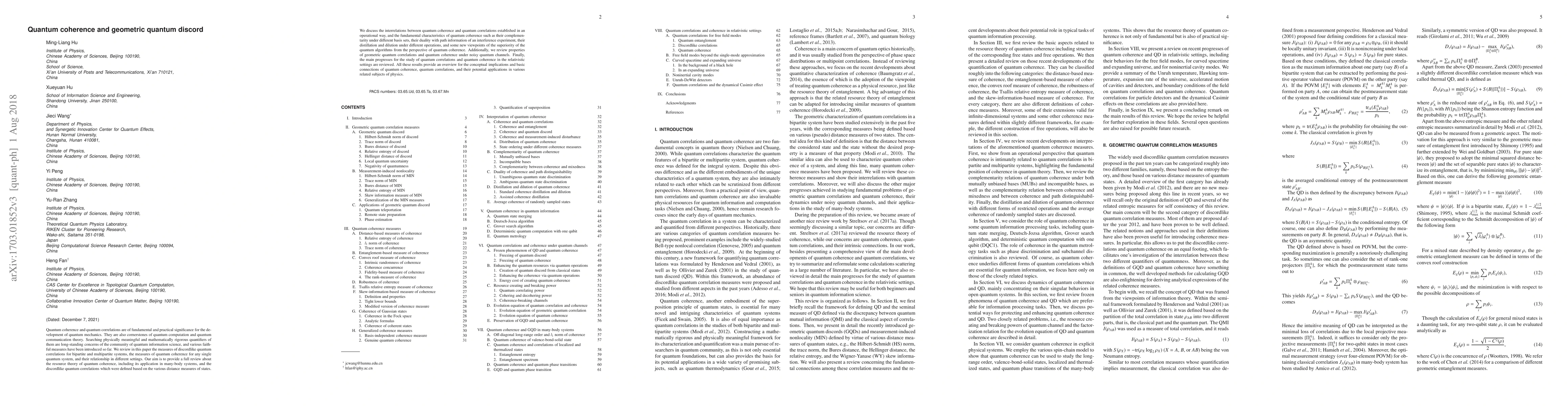 Quantum coherence and quantum correlations are of fundamental and practical significance for the development of quantum mechanics.They are also cornerstones of quantum computation and quantum communication theory. Searching physically meaningful and mathematically rigorous quantifiers of them are long-standing concerns of the community of quantum information science, and various faithful measures have been introduced so far. We review in this paper the measures of discordlike quantum correlations for bipartite and multipartite systems, the measures of quantum coherence for any single quantum system, and their relationship in different settings. Our aim is to provide a full review about the resource theory of quantum coherence, including its application in many-body systems, and the discordlike quantum correlations which were defined based on the various distance measures of states. We discuss the interrelations between quantum coherence and quantum correlations established in an operational way, and the fundamental characteristics of quantum coherence such as their complementarity under different basis sets, their duality with path information of an interference experiment, their distillation and dilution under different operations, and some new viewpoints of the superiority of the quantum algorithms from the perspective of quantum coherence. Additionally, we review properties of geometric quantum correlations and quantum coherence under noisy quantum channels. Finally, the main progresses for the study of quantum correlations and quantum coherence in the relativistic settings are reviewed. All these results provide an overview for the conceptual implications and basic connections of quantum coherence, quantum correlations, and their potential applications in various related subjects of physics.