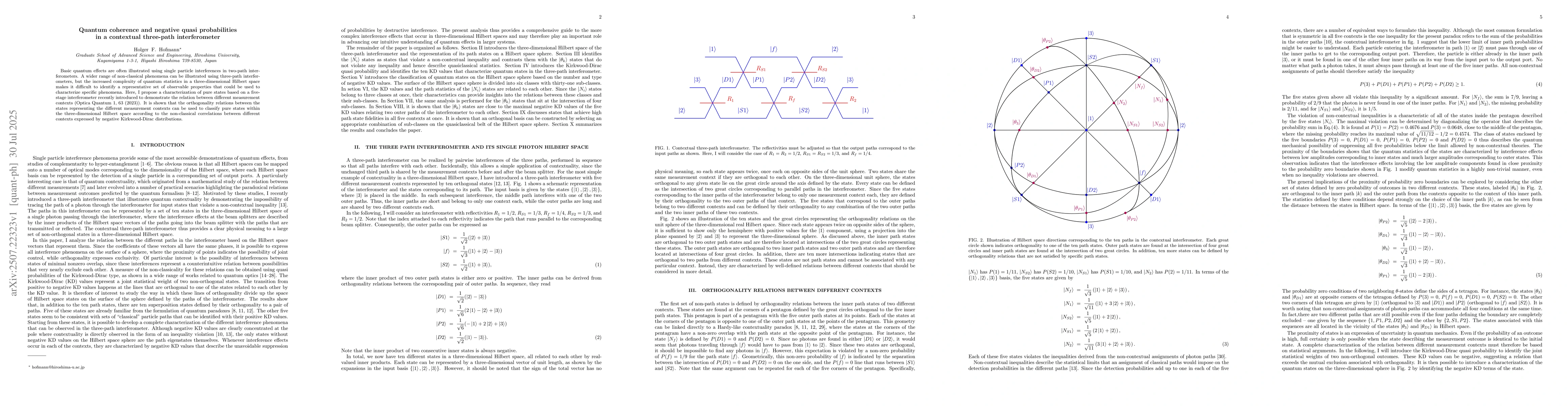 The research presents a unique approach to characterizing quantum states in a three-path interferometer, offering a systematic classification based on negative KD values and non-classical correlations between measurement contexts.