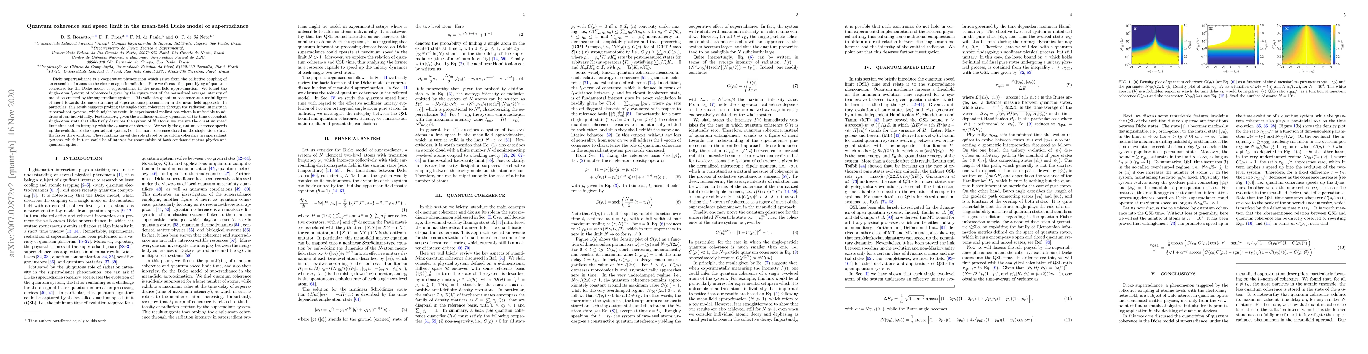 This paper quantifies quantum coherence in the mean-field Dicke model of superradiance, showing that single-atom coherence correlates with the intensity of emitted radiation. It also investigates the quantum speed limit, revealing that higher coherence accelerates the system's evolution, highlighting the significance of quantum coherence in superradiant dynamics.