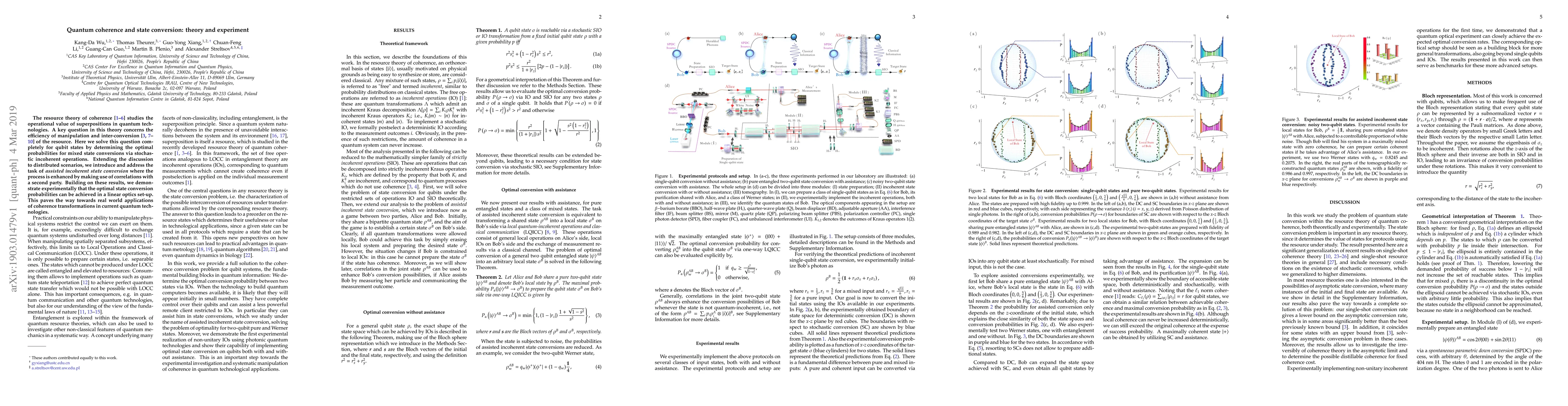 The resource theory of coherence studies the operational value of superpositions in quantum technologies. A key question in this theory concerns the efficiency of manipulation and inter-conversion of the resource. Here we solve this question completely for qubit states by determining the optimal probabilities for mixed state conversions via stochastic incoherent operations. Extending the discussion to distributed scenarios, we introduce and address the task of assisted incoherent state conversion where the process is enhanced by making use of correlations with a second party. Building on these results, we demonstrate experimentally that the optimal state conversion probabilities can be achieved in a linear optics set-up. This paves the way towards real world applications of coherence transformations in current quantum technologies.