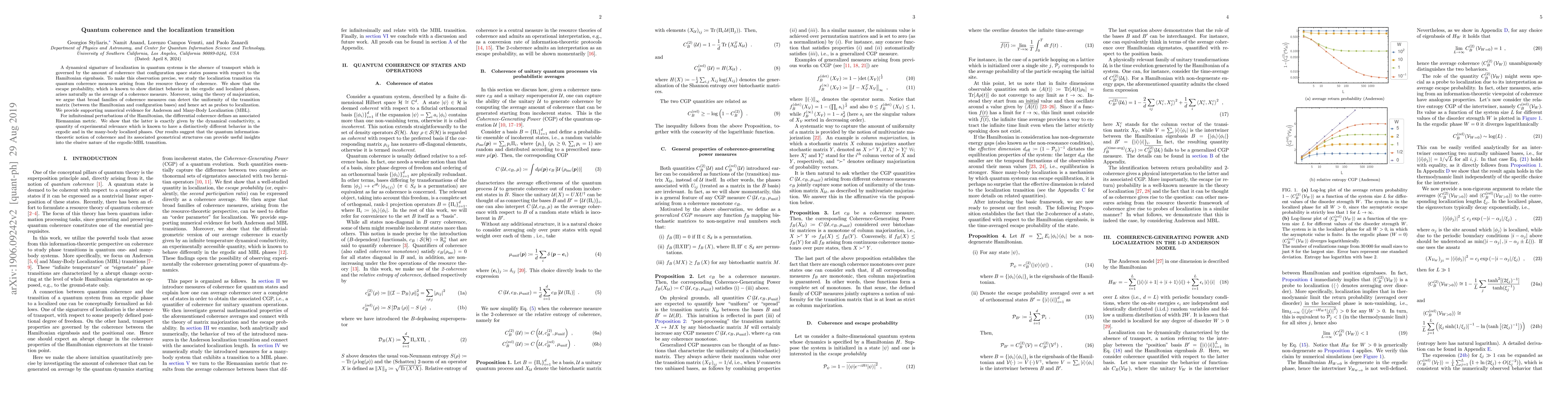 This paper explores the localization transition in quantum systems through the lens of quantum coherence, demonstrating that coherence measures can detect the uniformity of the transition matrix and serve as probes for localization. It shows that the escape probability, a key indicator of transport behavior, naturally emerges from the average of a coherence measure, and provides numerical evidence supporting these findings in Anderson and Many-Body Localization scenarios.