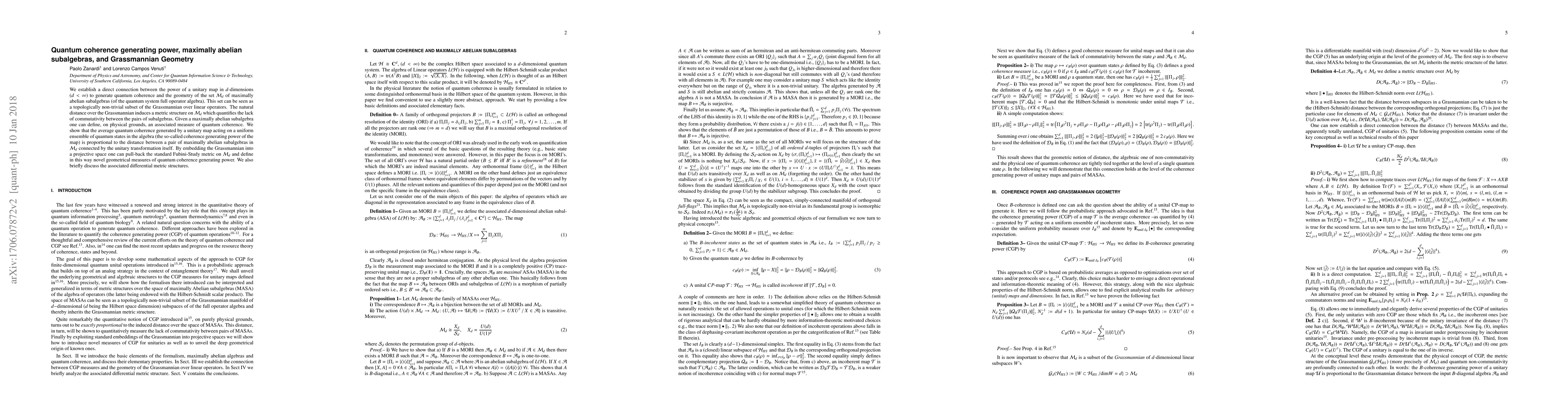 A study connects quantum coherence generation to geometry in maximally abelian subalgebras of a quantum system, showing coherence is proportional to the distance between these subalgebras.