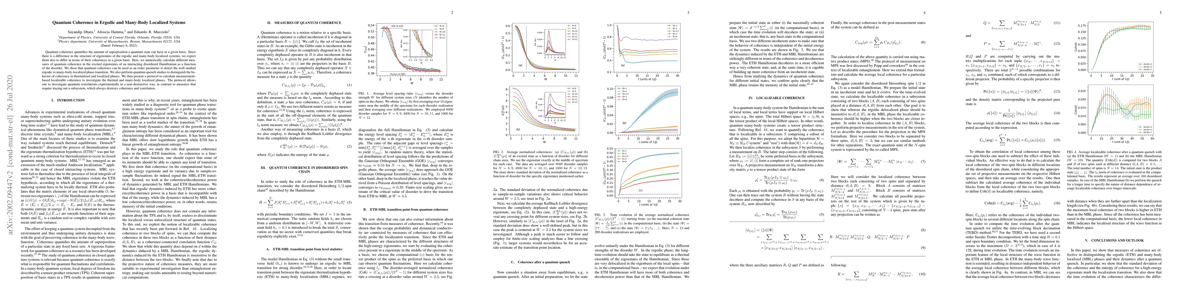 Researchers study quantum coherence in two types of quantum systems: ergodic and many-body localized systems. They find that quantum coherence can be used as an order parameter to detect a phase transition between these systems.