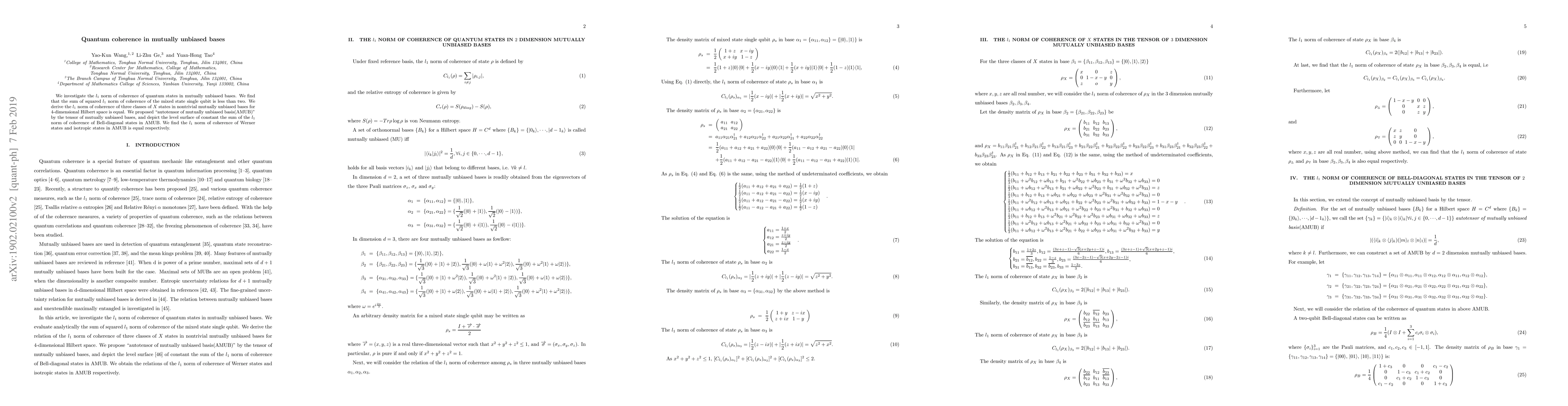 This paper explores the $l_{1}$ norm of coherence for quantum states in mutually unbiased bases, revealing that the sum of squared $l_{1}$ norm coherence for mixed single qubit states is less than two. It also demonstrates that three classes of $X$ states in $4$-dimensional Hilbert space exhibit equal $l_{1}$ norm coherence and introduces the "autotensor of mutually unbiased basis (AMUB)" to analyze coherence levels in Bell-diagonal states.