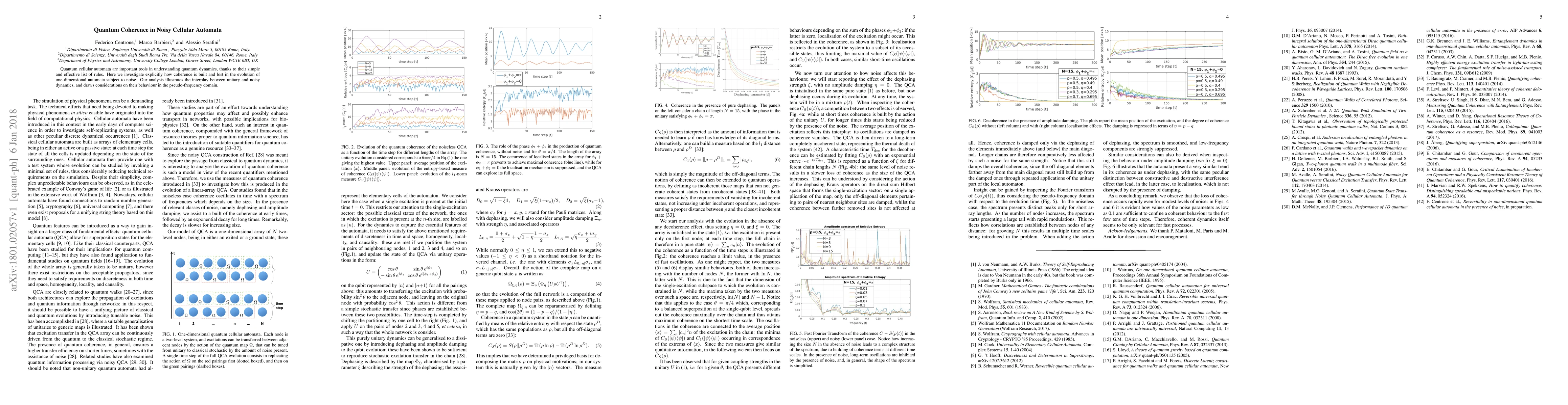 Researchers studied how quantum coherence is built and lost in one-dimensional cellular automata under noise, finding an interplay between unitary and noisy dynamics. Their analysis provides insights into the pseudo-frequency domain behavior of these systems.
