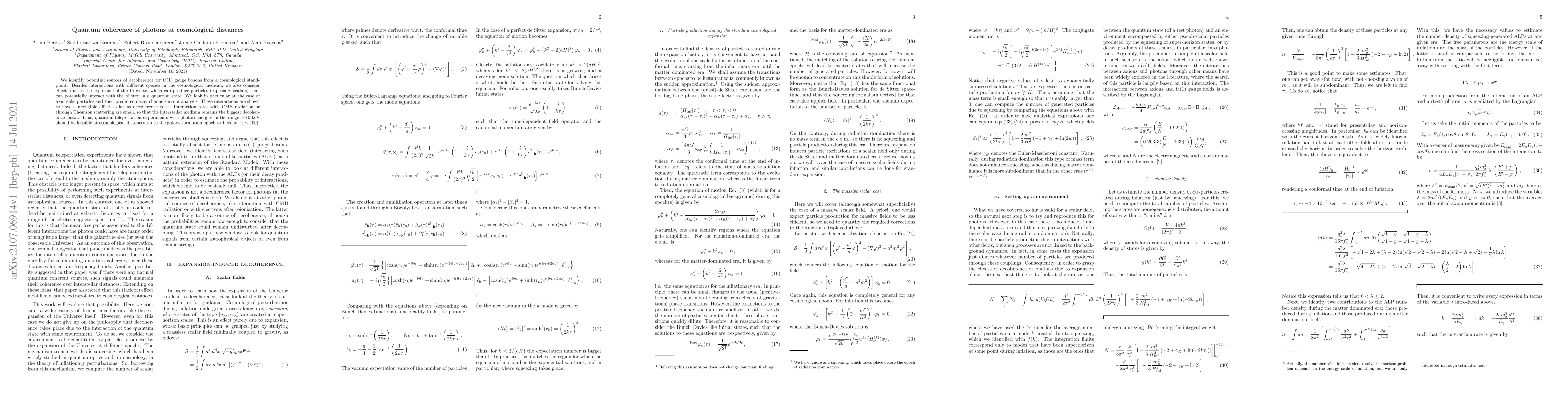 We identify potential sources of decoherence for $U(1)$ gauge bosons from a cosmological standpoint. Besides interactions with different species in the cosmological medium, we also consider effects due to the expansion of the Universe, which can produce particles (especially scalars) than can potentially interact with the photon in a quantum state. We look in particular at the case of axion-like particles and their predicted decay channels in our analysis. These interactions are shown to have a negligible effect as far as decoherence goes. Interaction rates with CMB radiation or through Thomson scattering are small, so that the interstellar medium remains the biggest decoherence factor. Thus, quantum teleportation experiments with photon energies in the range $1$-$10$ keV should be feasible at cosmological distances up to the galaxy formation epoch or beyond ($z \sim 100$).
