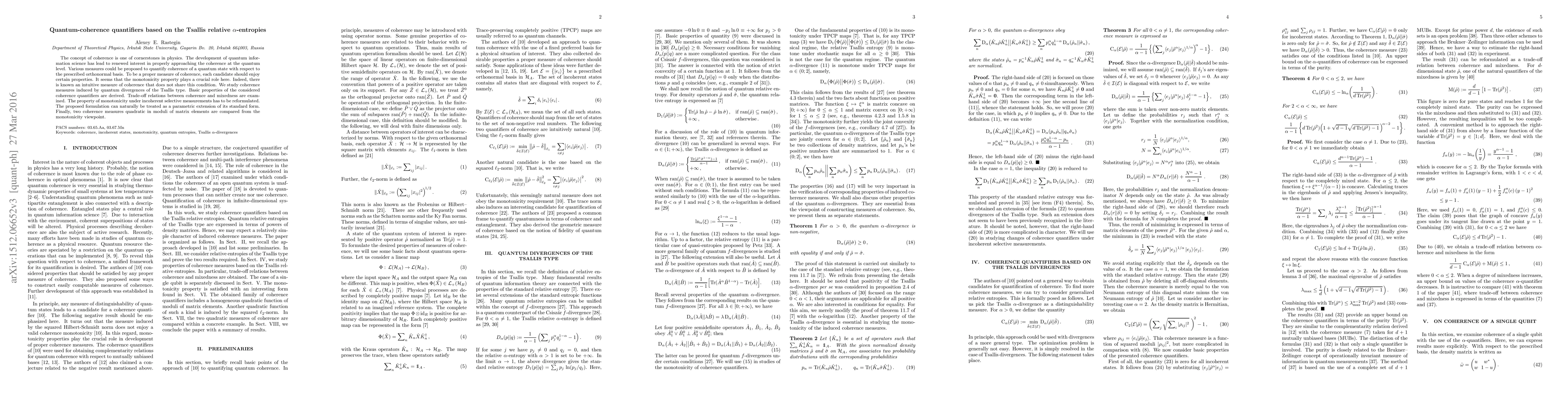 Research investigates coherence measures in quantum states based on Tsallis relative α-entropies, focusing on properties like monotonicity and trade-offs between coherence and mixedness.