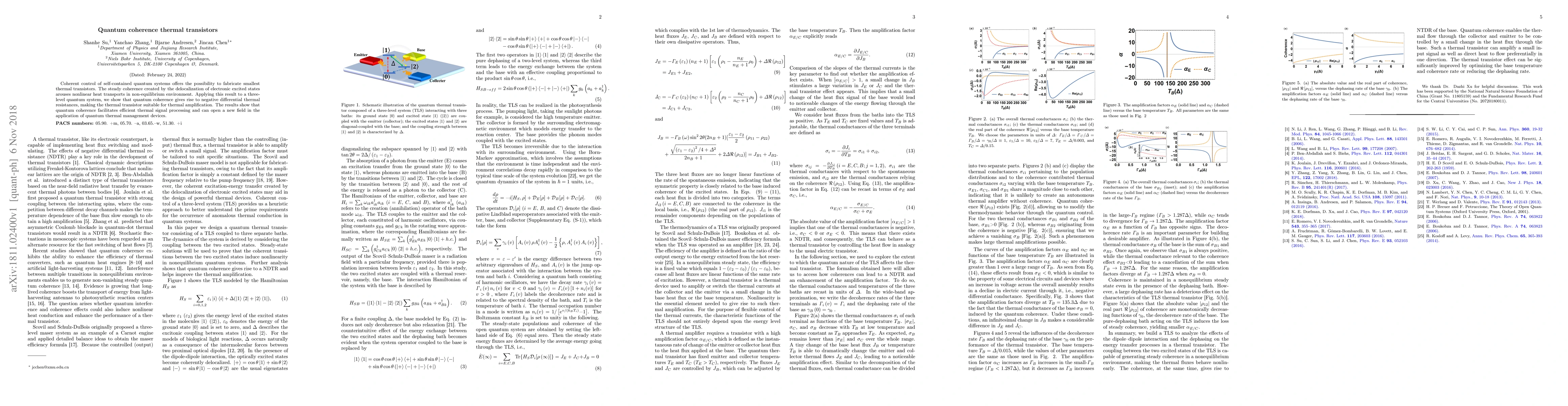 This paper explores how quantum coherence in self-contained quantum systems can be used to create thermal transistors with negative differential thermal resistance, enabling efficient thermal amplification and signaling. The study demonstrates the potential for quantum thermal management devices through the coherent control of electronic excited states.